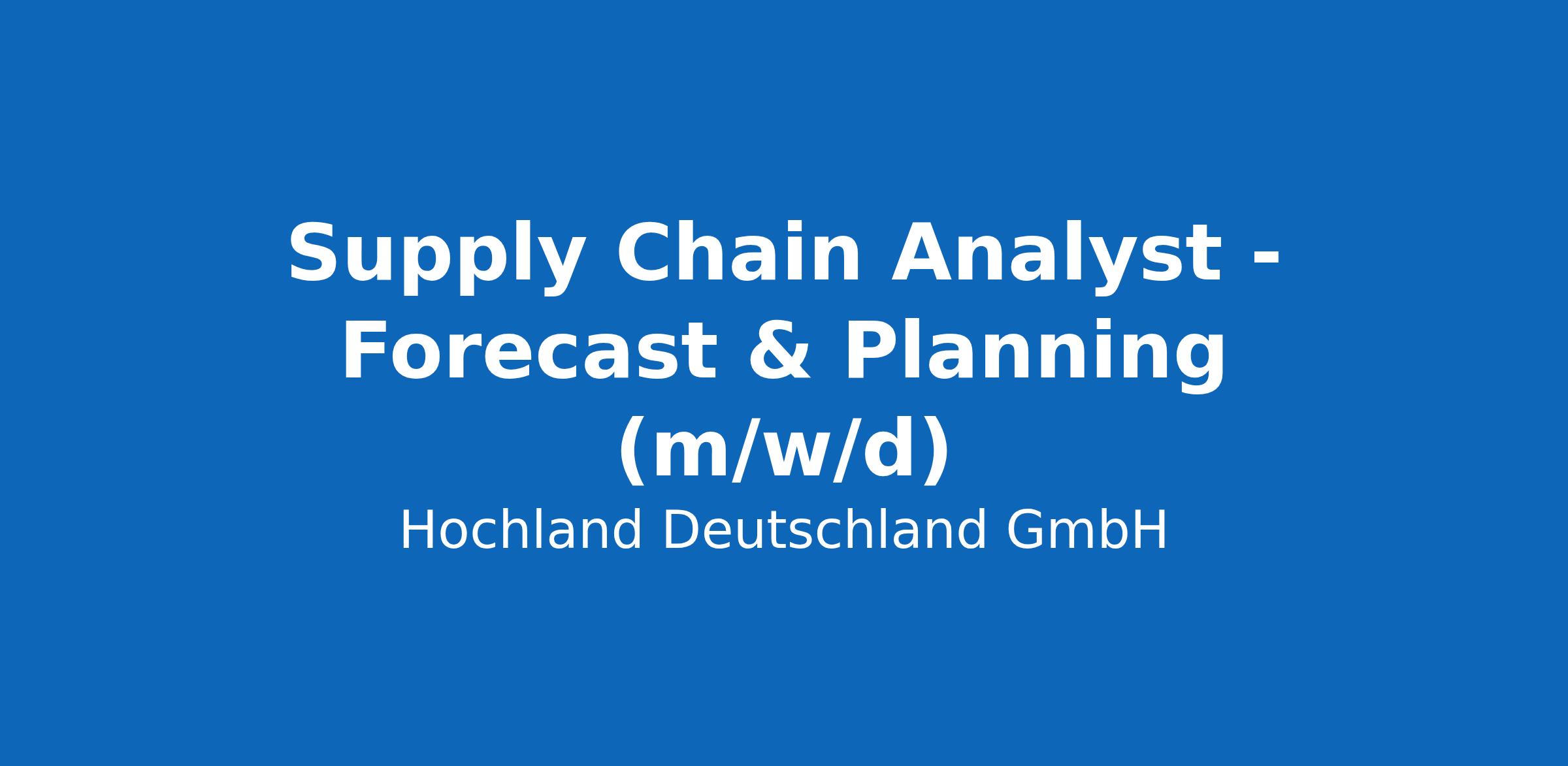 Supply Chain Analyst - Forecast & Planning (m/w/d)