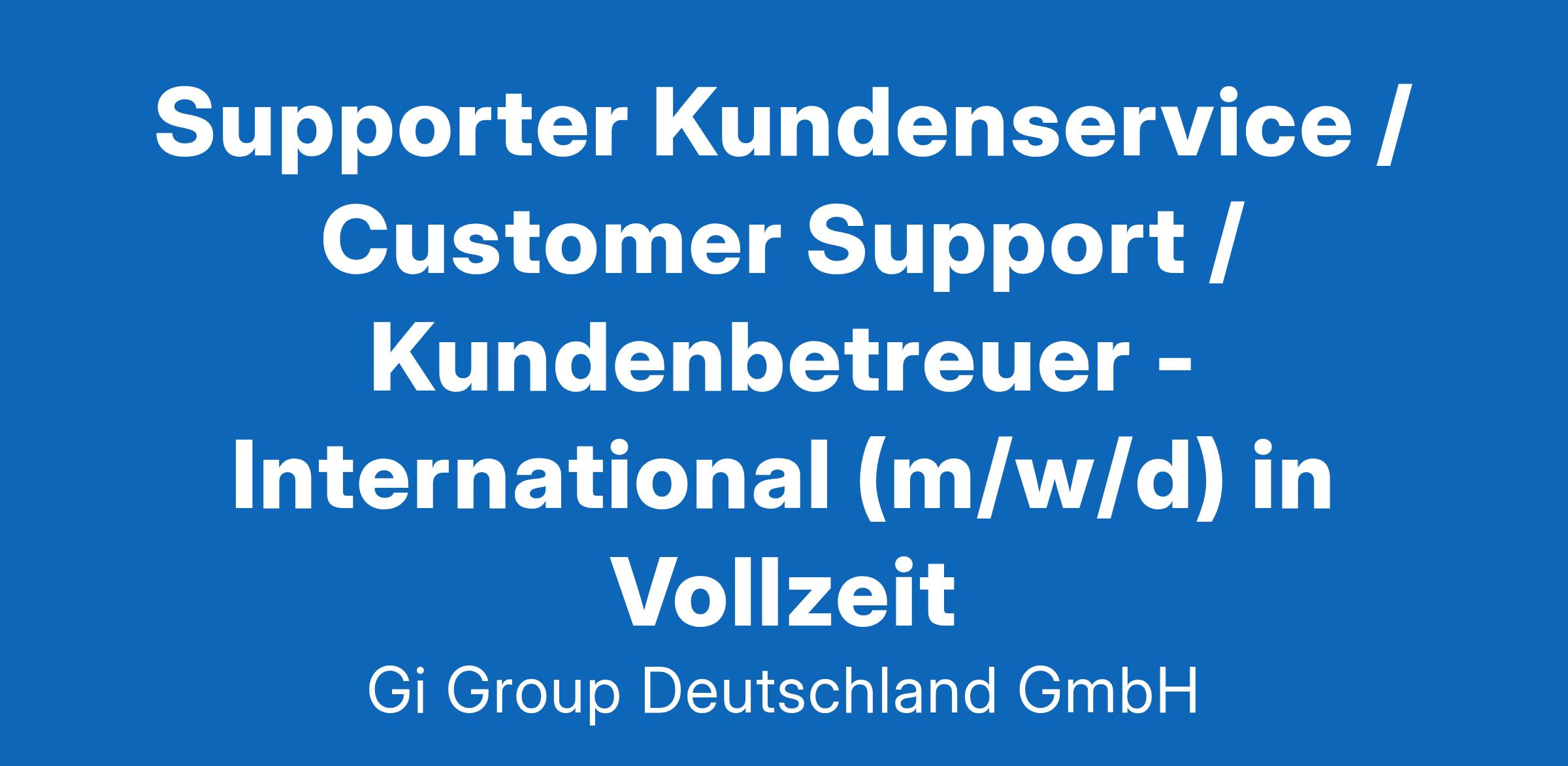 Supporter Kundenservice / Customer Support / Kundenbetreuer - International (m/w/d) in Vollzeit