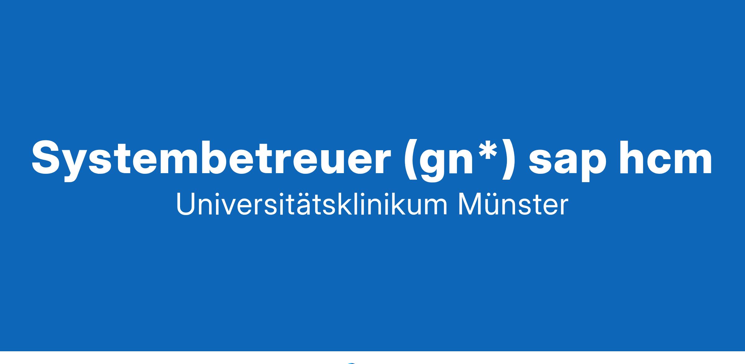 Universitätsklinikum Münster -- Systembetreuer (gn*) SAP HCM*Systembetreuer (gn*) SAP HCM*Unbefristet | In Vollzeit mit 38,5 Wochenstunden | Geschäftsbereich IT (GBIT) | Kennziffer 10151* Wir sind das UKM*. Wir haben einen klaren gesellschaftlichen Auftrag und mit der Verbindung von Krankenversorgung, Forschung und Lehre eine besondere gesellschaftliche Verantwortung.Damit wir unserem hohen Anspruch tagtäglich gerecht werden, freuen wir uns auf Deine Fachkompetenz im Geschäftsbereich IT (GBIT). Hier stellen wir mit mehreren hochverfügbaren Rechenzentren eine moderne virtuelle IT-Landschaft mit komplexen Anwendungen für betriebswirtschaftliche und klinische Systeme in einem weitgehend automatisierten 24/7-Betrieb zur Verfügung. Als leistungsstarke IT-Organisation im Münsterland betreut der Geschäftsbereich IT mehr als 7.000 Arbeitsplätze und steuert maßgebliche und strategische Projekte. Die Abteilung „Betriebswirtschaftliche Systeme“ ist u. a. für den SAP-Applikations-Betrieb sowie zahlreiche Spezialapplikationen, die Anwendendenbetreuung und die Weiterentwicklung der Systeme verantwortlich. Für den Bereich Personal setzen wir im Unternehmen das SAP HCM-Umfeld mit Personalabrechnung, Dienstplanung, Zeitwirtschaft (positiv/negativ) und integriertem Organisationsmanagement ein – *am besten mit DIR! *VERANTWORTUNGSVOLLE AUFGABEN:Customizing im SAP-HCM-Bereich (u. a. zukünftig im Cloudumfeld)Zusammenarbeit mit der Fachabteilung bei Fehleranalyse und Problembehebung sowie der Entwicklung von IT-Lösungen auf Basis der AnforderungenKoordinierung und Durchführung des ReleasemanagementsImplementierung und Wartung der Schnittstellen zu DrittsystemenEinrichtung und Pflege der SAP-HCM-Rechte und -RollenMitarbeit in interdisziplinären besetzten Fach- und/oder Projekt-Teams