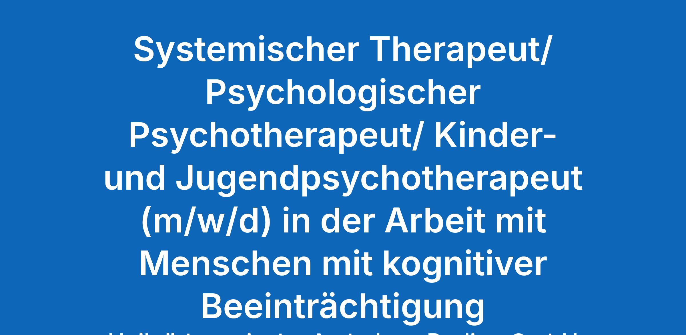 Systemischer Therapeut/ Psychologischer Psychotherapeut/ Kinder- und Jugendpsychotherapeut (m/w/d) in der Arbeit mit Menschen mit kognitiver Beeinträchtigung