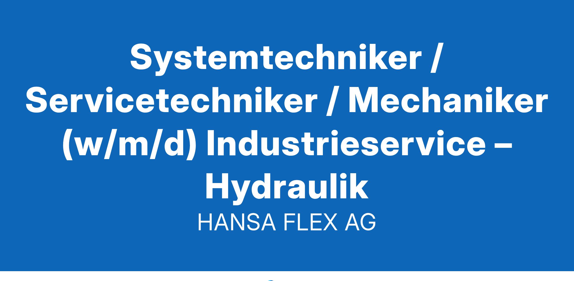 Systemtechniker/ Servicetechniker/ Mechaniker (w/m/d) Industrieservice – Hydraulik Hier bewerben! Sie haben ein Herz für Maschinen? Dann sind Sie bei HANSA-FLEX genau richtig! Unsere Mission ist es, Maschinen mit modernster Hydraulik (wieder) zum Laufen zu bringen. Ob Schläuche, Rohre, Pumpen oder Zylinder: Unsere hohen Qualitätsansprüche und unser unermüdlicher Einsatz für den Kunden haben uns zu einem der international führenden Unternehmen für hydraulische Verbindungstechnik gemacht. Das höchste Gut unseres Familienunternehmens sind dabei unsere 5.000 Mitarbeiter*innen. Leben Sie Ihre Leidenschaft für Technik und verstärken Sie unser Team im Industrieservice für den Großraum Frankfurt und Mannheim als Systemtechniker/ Servicetechniker/ Mechaniker (w/m/d) Industrieservice – Hydraulik. Hier setzen Sie Ihre Energie ein: