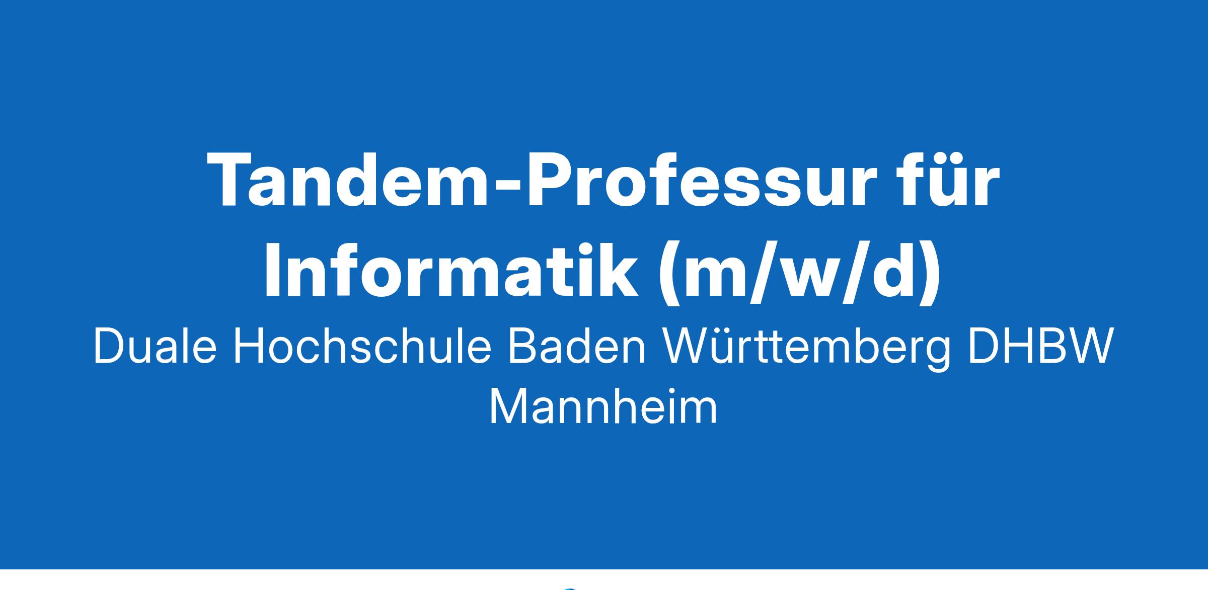 Im Rahmen der Tandem-Professur erfolgt die Beschäftigung in einem auf höchstens vier Jahre befristeten außertariflichen Arbeitsverhältnis mit einem Umfang von 40 % einer Vollzeitprofessur an der DHBW und im Umfang von 60 % bei einem kooperierenden Unternehmen, bestenfalls im passenden Fachgebiet zur Professur.