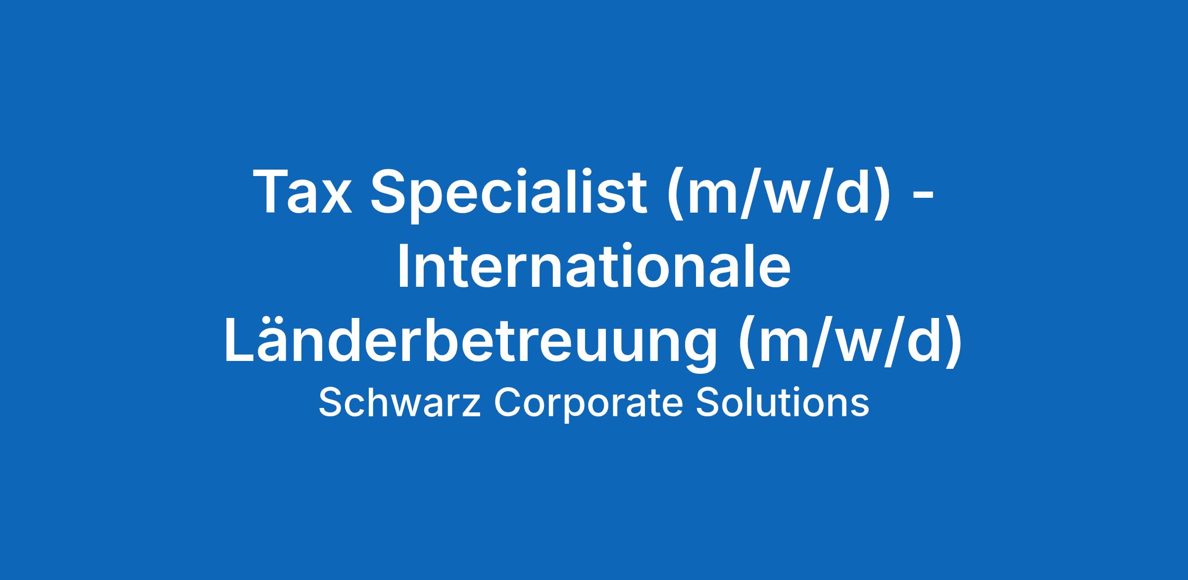 Tax Specialist - Internationale Länderbetreuung