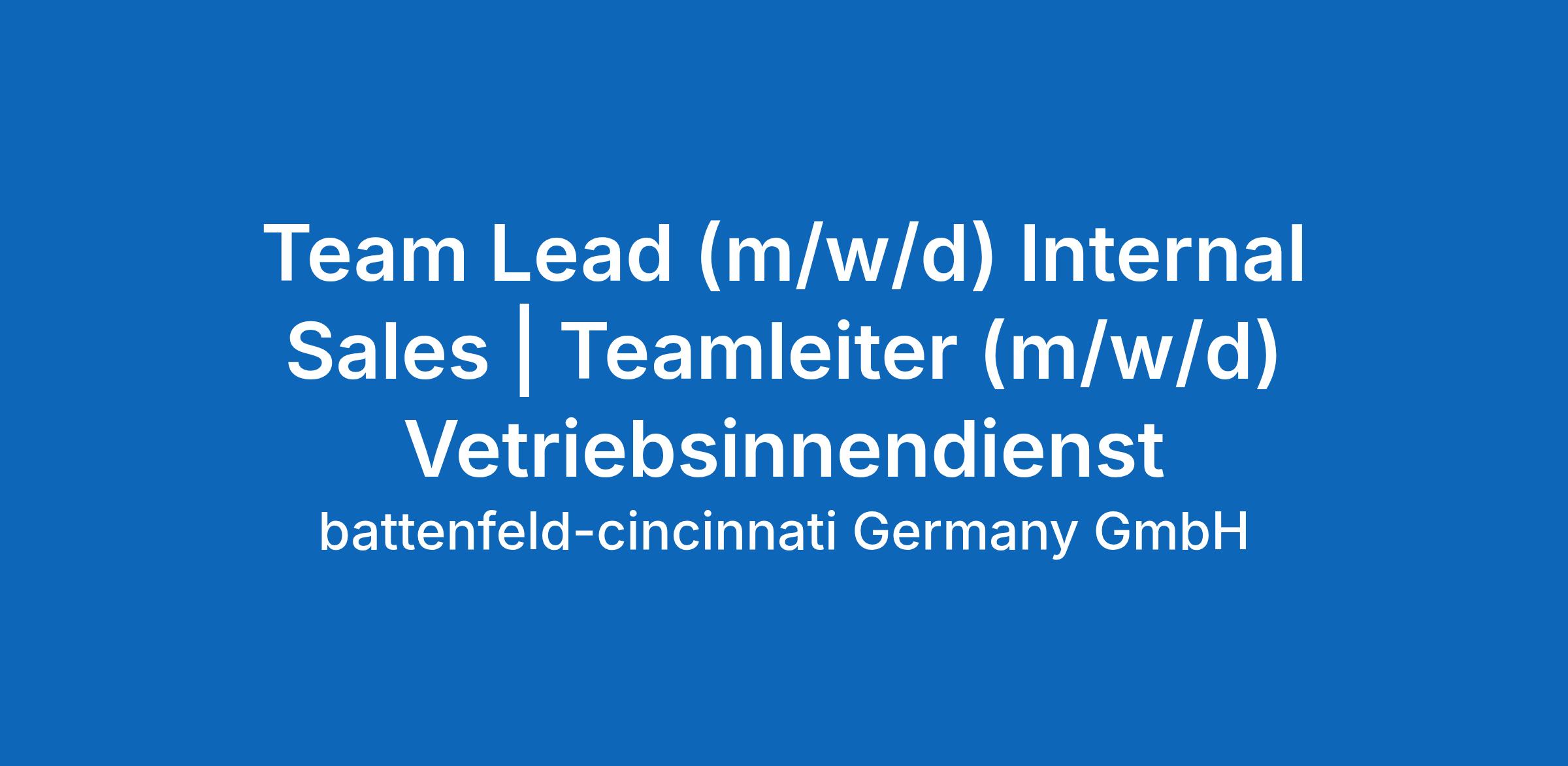 Team Lead (m/w/d) Internal Sales | Teamleiter (m/w/d) Vetriebsinnendienst