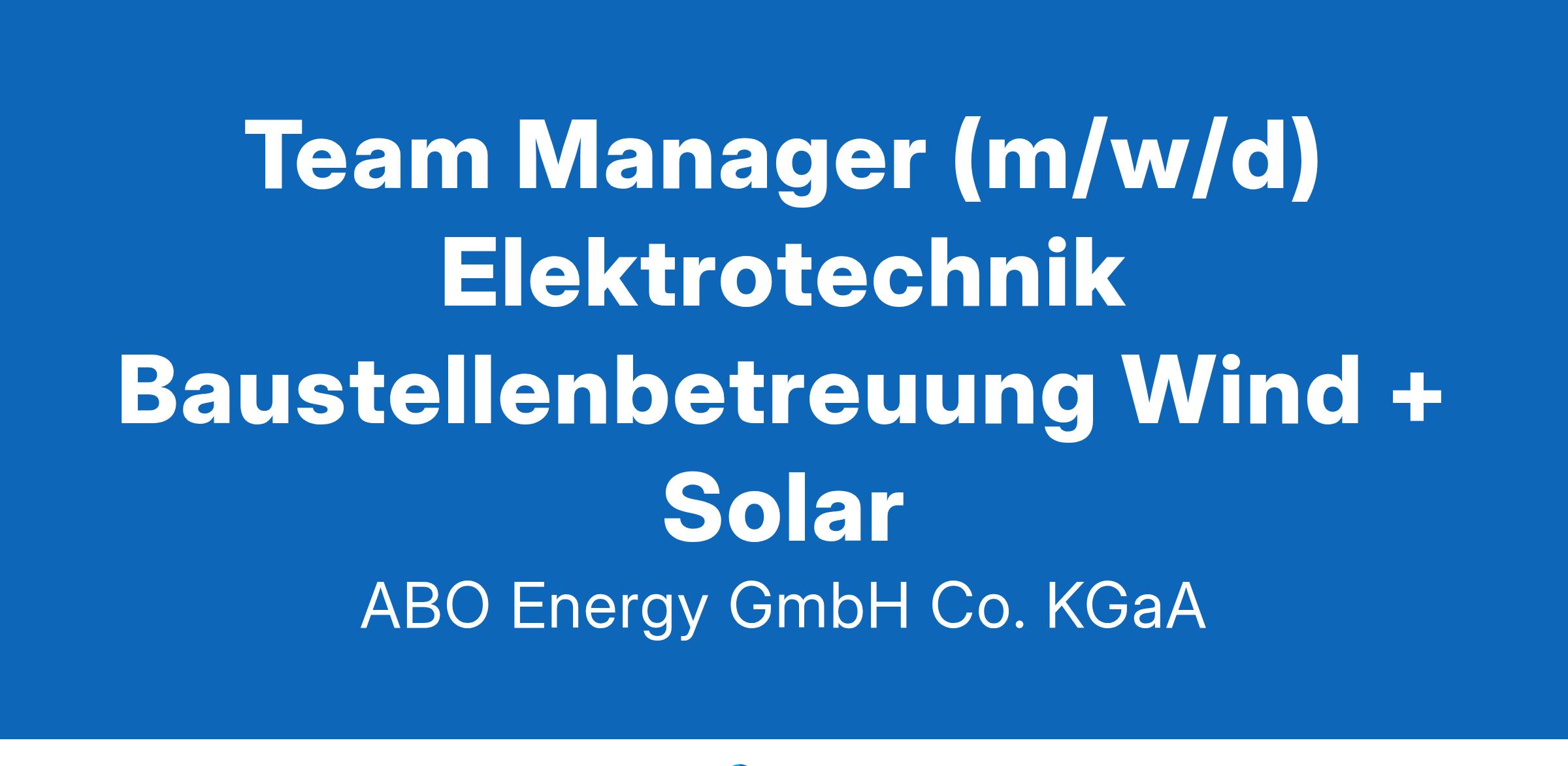 Team Manager (m/w/d) Elektrotechnik Baustellenbetreuung Wind + Solar