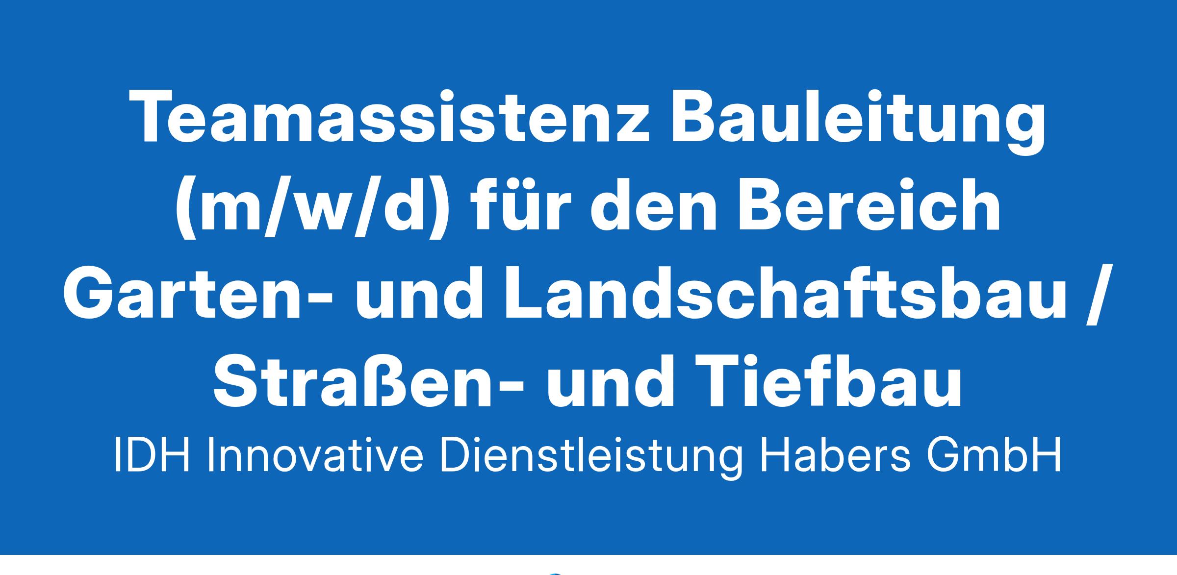 Zur Verstärkung unseres Teams suchen wir in Vollzeit für unseren Standort Overath Teamassistenz Bauleitung (m/w/d) für den Bereich Garten- und Landschaftsbau Straßen- und Tiefbau Sie haben Erfahrungen im Bereich Straßen-/Tiefbau bzw. Garten-Landschaftsbau einen sicheren Umgang mit MS Office sind verantwortungsbewusst, sorgfältig, teamfähig und zuverlässig sind im Besitz des Führerscheins (Klasse B) Ihre Aufgaben sind u.a. Auftragsvorbereitung (u.a. Verkehrsgenehmigungen und Planauskünfte einholen) Kommunikation mit dem Auftraggeber Unterstützung bei der Nachtragserstellung Rechnungserstellung Wir sind ein serviceorientiertes Dienstleistungsunternehmen mit vielen Schwerpunkten (u.a. Straßen- und Tiefbau, Garten- und Landschaftsbau) und bieten unter anderem eine sichere und unbefristete Festanstellung, interessante Sozialleistungen und attraktive Zusatzleistungen! Wenn Sie finden – wir passen perfekt zusammen – senden Sie uns unbedingt Ihre Bewerbungsunterlagen an: bewerbung@idh-koeln.de Innovative Dienstleistungen Habers GmbH IDH GmbH, Klef 4, 51491 Overath www.idh-koeln.de