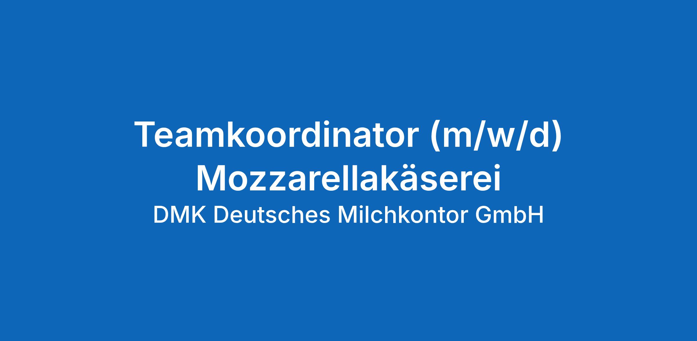 Verstärken Sie unser Team zum 01.07.2026 zunächst befristet für ein Jahr, als Teamkoordinator (m/w/d) Mozzarellakäserei