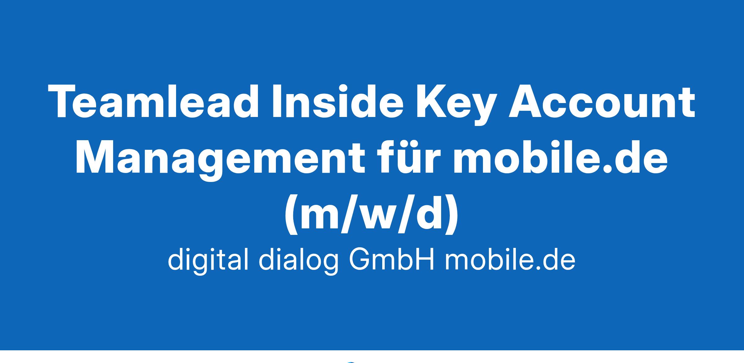 Über DIGITAL DIALOG: Im Jahr 2000 gegründet ist DIGITAL DIALOG mit 2 Standorten in den Metropol-Regionen Rhein/Main und Berlin/Potsdam Deutschlands führenden Sales-Agenturen. Wir stehen für Premium B2B/B2C Sales & Services für StartUps, ScaleUps, Marktführer und solche, die es werden wollen. Die ca. 265 Mitarbeiter:innen sind in den verschiedensten Bereichen eingesetzt: von der generellen Vertriebsunterstützung, insbesondere der Generierung von Leads über das Telefon, zur Terminvereinbarung B2B (B2C nur bei Bestandskunden), Winback und Churn-Prevention-Kampagnen, Marktforschung/ Kundenzufriedenheitsmessungen (CATI) oder dem Vertragsabschluss am Telefon (TeleSales). Die Kunden kommen dabei meistens aus dem eCommerce und sind in 80% der Fälle Marktführer in ihrem Segment. Auch im Kundenservice (Customer Service/Customer Support) hat die Digital Dialog Group fast ein Vierteljahrhundert Erfahrung und begeistert Auftraggeber aus diversen Branchen wie eCommerce, Automotive, Financial Services/Banken, Energieversorger und weltweit bekannte Kosmetik-Marken. Deine Mission: Zur Verstärkung unseres Sales-Teams für mobile.de suchen wir einen erfahrenen und motivierten TEAMLEAD für unsere Inside Key Account Management Team. Der Fokus liegt auf der erfolgreiche operative Umsetzung des Kundenprojektes, Mitarbeiterentwicklung und Coaching. In deiner Rolle als Teamlead übernimmst du die Verantwortung für die Führung und Entwicklung eines bereits bestehenden und erfolgreichen Vertriebsteams, bestehend aus sechs Mitgliedern. Diese Aufgaben erwarten dich: Fachliche und disziplinarische Führung eines Teams von Vertriebsinnendienstmitarbeitenden Steuerung und Optimierung der Vertriebsprozesse zur Erreichung der Teamziele Regelmäßige Analyse der Vertriebskennzahlen und Ableitung von Maßnahmen zur Leistungssteigerung Entwicklung und Förderung der Teammitglieder durch gezieltes Coaching und Mentoring Ansprechpartner für dein Team und Eskalationsstufe bei komplexen Kundenanfragen Mitwirkung bei der strategischen Weiterentwicklung und Implementierung neuer Projekte und Vertriebslösungen Das erwarten wir von dir: Nachgewiesene Erfahrung in der Führung und Entwicklung eines Vertriebsteams Mehrjährige Erfahrung im Vertriebsinnendienst oder in einer ähnlichen Position (idealerweise im B2B-Bereich) Erfüllen oder Übertreffen der vordefinierten Ziele deines Teams via operative Umsetzung Ausgeprägte Vertriebsaffinität und Kundenorientierung Fähigkeit, dein Team zu motivieren und zu Bestleistungen zu führen Analytische Denkweise und Erfahrung im Umgang mit Vertriebskennzahlen Sehr gute Deutschkenntnisse (C1) in Wort und Schrift sowie sichere MS-Office-Kenntnisse Kommunikationsstärke, Durchsetzungsvermögen und Organisationstalent Dein Profil: Führungspersönlichkeit: Du hast bereits erfolgreiche Teams geleitet und bringst eine überzeugende, selbstbewusste Art mit, die dir hilft, dein Team zu motivieren und strategische Entscheidungen zu treffen. Weiterentwicklung: Du bringst Erfahrung im Coaching mit und hast Spaß daran, Menschen weiterzuentwickeln. Kommunikationsstärke: Hervorragende interne und externe Kommunikationsfähigkeiten. Ergebnisorientiert: Kreative und zielgerichtete Herangehensweise zur Erreichung der Vertriebsziele. Analytische Fähigkeiten: Hohe Affinität für Zahlen- und Marktanalysen sowie eine unternehmerische Denkweise. Technische Fähigkeiten: Sicherer Umgang mit MS-Office und CRM-Systemen. Was uns ausmacht: Bei uns wirst du Teil eines dynamischen Teams, das auf Authentizität und eine "let’s make it happen"-Mentalität setzt. Wir bieten dir flexible Vertrauensarbeitszeiten, flache Hierarchien und ein kollegiales Arbeitsumfeld, in dem Humor und gegenseitige Unterstützung großgeschrieben werden. Darüber hinaus bieten wir dir: Eine eigenverantwortliche Position mit kurzen Entscheidungswegen und vielseitigen Gestaltungsmöglichkeiten Attraktive Vergütung und leistungsabhängige Boni Weiterbildungsmöglichkeiten und Karriereperspektiven 2 Tage Möglichkeit auf Homeoffice in der Woche (Inhalt entfernt) Bist du bereit, die Zukunft des Vertriebs bei DIGITAL DIALOG aktiv mitzugestalten und ein Team zu führen, das Erfolge feiert? Dann bewirb dich jetzt und werde Teil unseres engagierten Teams! Dann freuen wir uns auf Deine vollständigen Bewerbungsunterlagen inklusive Gehaltsvorstellung und frühestmöglichem Eintrittstermin an: Jetzt bewerben