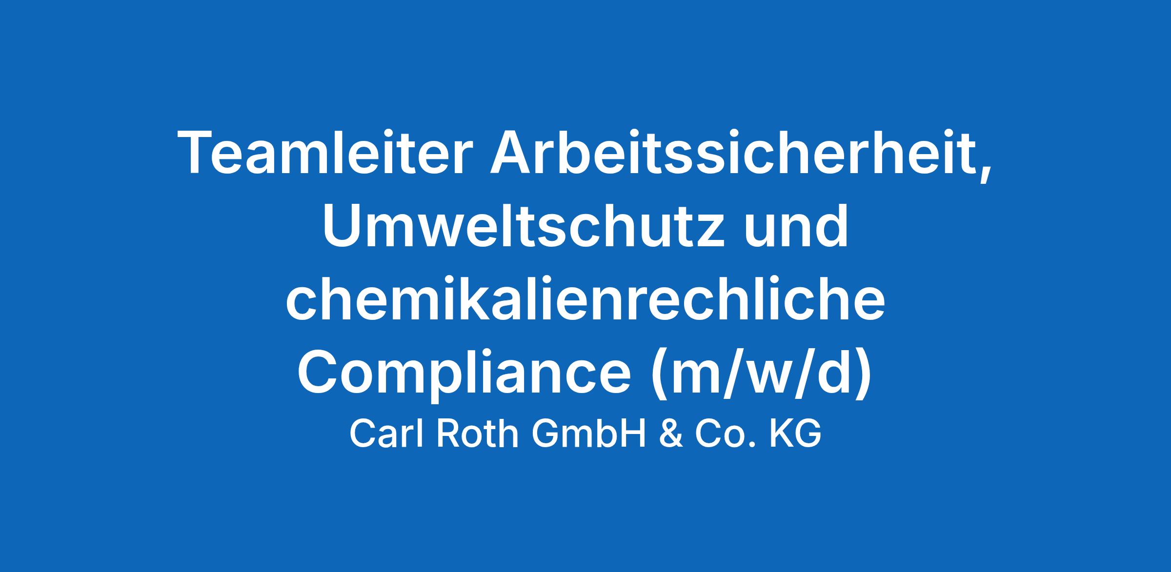 Carl ROTH unterstützt seit über 145 Jahren Menschen und Unternehmen mit Lösungen rund um die Chemie. Forschende weltweit vertrauen auf unser Know-how und unser Sortiment aus Chemikalien und Laborzubehör. Wir gestalten aktiv den Wandel in den Laboren der Zukunft und legen großen Wert auf engen Kontakt zu unseren Kunden. Unser Ziel ist es, den Alltag zu erleichtern und die Arbeit der Labore zu optimieren. Gemeinsam schaffen wir Lösungen für eine bessere Zukunft – Supporting science Improving lives. Für die Fortschreibung unserer Erfolgsgeschichte suchen wir eine überzeugende Persönlichkeit für die Stelle „Teamleiter Arbeitssicherheit, Umweltschutz und chemikalienrechliche Compliance (m/w/d)".