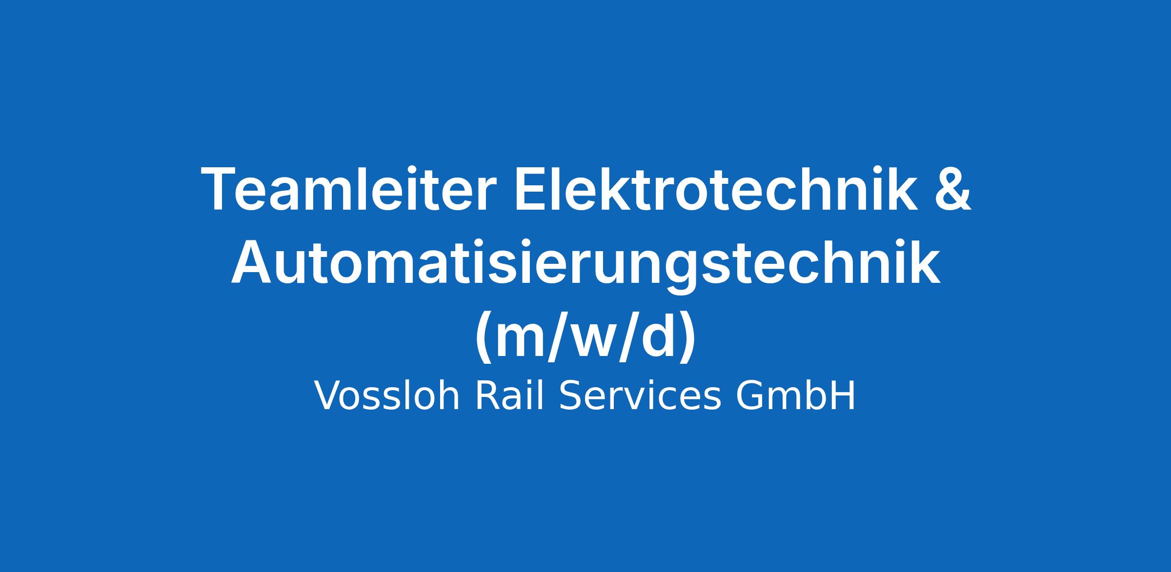 Teamleiter Elektrotechnik & Automatisierungstechnik (m/w/d)