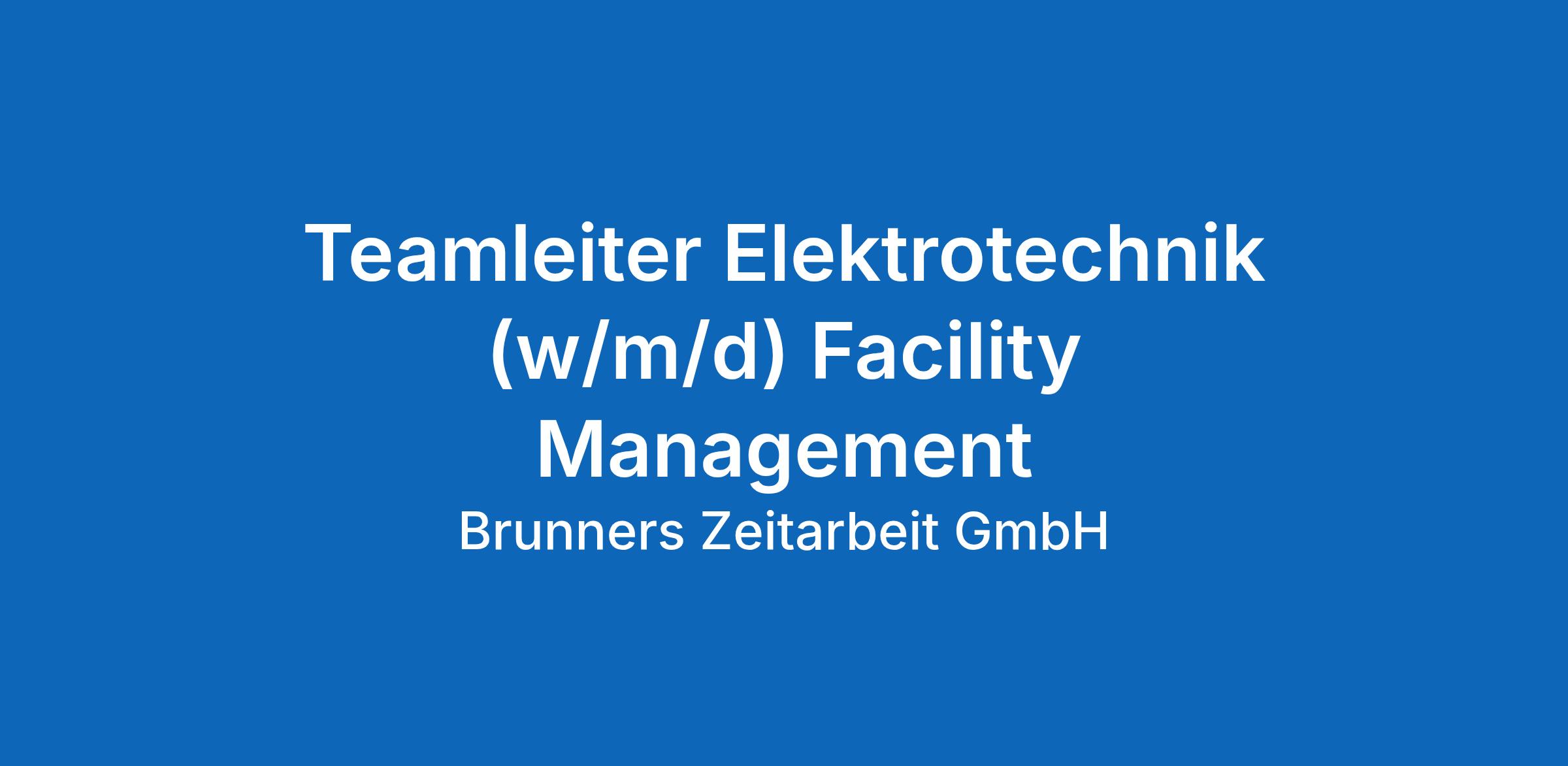 Teamleiter Elektrotechnik (w/m/d) Facility Management