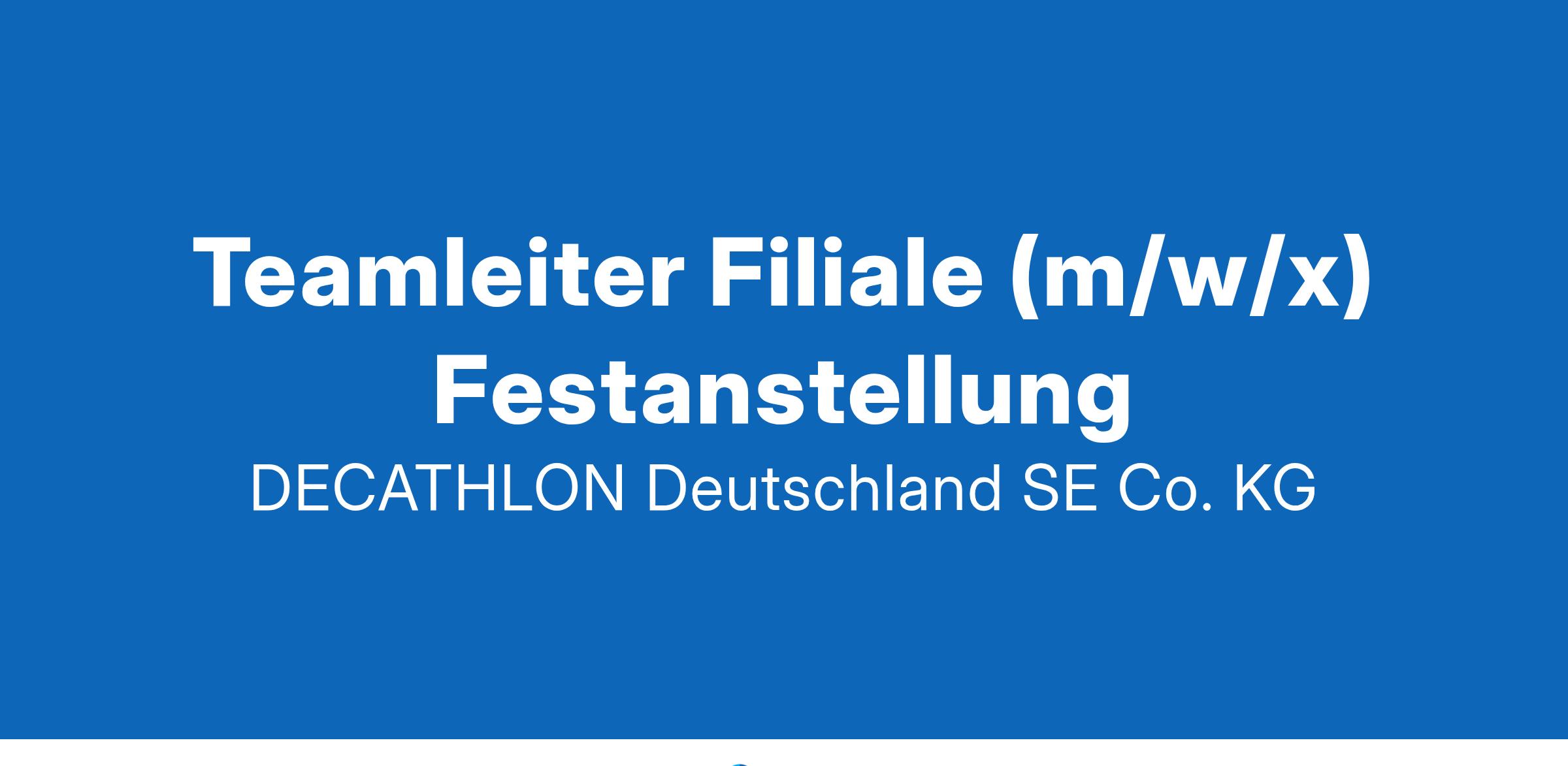 DARAUF KANNST DU DICH FREUEN Sicherheit: Wir möchten gerne langfristig mit dir zusammenarbeiten - daher erhältst du einen unbefristeten Vertrag in Festanstellung Mehr Zeit für dich: 37,5 Stunden pro Woche (7,5 Stunden pro Tag) Erfolge werden belohnt: Wir bieten dir eine Erfolgsprämie mit bis zu 10% pro Monat zusätzlich zum Grundgehalt und Erfolgsbeteiligungen Finanzielle Benefits: Du hast die Möglichkeit, eine Bezuschussung zu deiner betrieblichen Altersvorsorge zu bekommen und einmal pro Jahr über dein Gehalt mit deinem/deiner Leader:in zu sprechen Mitarbeiterrabatte: Du erhältst 30% auf alle DECATHLON - Eigenmarken Dein mentales Wohlbefinden steht bei uns im Fokus: Du bekommst 30 Tage Urlaub, kostenfreie und anonyme Online-Beratung zur mentalen Gesundheit und die Möglichkeit eine einmonatige Auszeit alle zwei Jahre nehmen zu können Deine Entwicklung liegt uns am Herzen: Durch unser starkes Wachstum entstehen ständig neue nationale und internationale Weiterentwicklungsmöglichkeiten. Bei unseren regelmäßigen Entwicklungsgesprächen bestimmst du selbst, welche Themen besprochen werden und legst eigene Ziele fest - hierdurch bleibst du im engen Kontakt mit deinem Leader und treibst deine Projekte voran. Um deine fachlichen und persönlichen Skills weiterzuentwickeln, kannst du an zahlreichen Trainings teilnehmen Sport im Arbeitsalltag? Bei uns selbstverständlich! Wir feiern Erfolge und das tun wir bei sportlichen Team-Events Das Team macht den Unterschied: Genau wie im Sport steht auch bei uns der Teamspirit an erster Stelle. Wir sind ein motiviertes Team, die einen sehr freundschaftlichen Umgang miteinander haben und das sportliche “du” nutzen, egal in welcher Position Moderne Filialen: Unser Team in den Filialen wird mit digitalen Arbeitsgeräten ausgestattet. Du erhältst ein eigenes Tablet, bekommst Zugriff auf einen Laptop und arbeitest mit digitalen Showrooms. So fällt es dir ganz leicht, die passenden Produkte für unsere sportbegeisterten Kund:innen zu finden DAFÜR BIST DU VERANTWORTLICH Dein Team zu rekrutieren, zu führen und deinen eigenen Bereich zu managen Deine Kund:innen durch kompetente Beratung täglich zu begeistern und zufriedenzustellen Die Sortimentsauswahl, Zusammenstellung und Verfügbarkeit deiner Produkte Deine wirtschaftlichen Leistungen zu analysieren und zu optimieren Deinen Sportbereich in deiner Region zu vermarkten DAS BRINGST DU MIT Du hast ein abgeschlossenes Studium oder kommst als Quereinsteiger:in Du hast Lust, ein Team zu führen und jede:n Mitarbeiter:in individuell zu managen Du kannst unsere Kund:innen mit deiner Freude am Sport begeistern Du kannst überzeugend kommunizieren und liebst Herausforderungen Du handelst eigenständig und packst gerne mit an, auch samstags