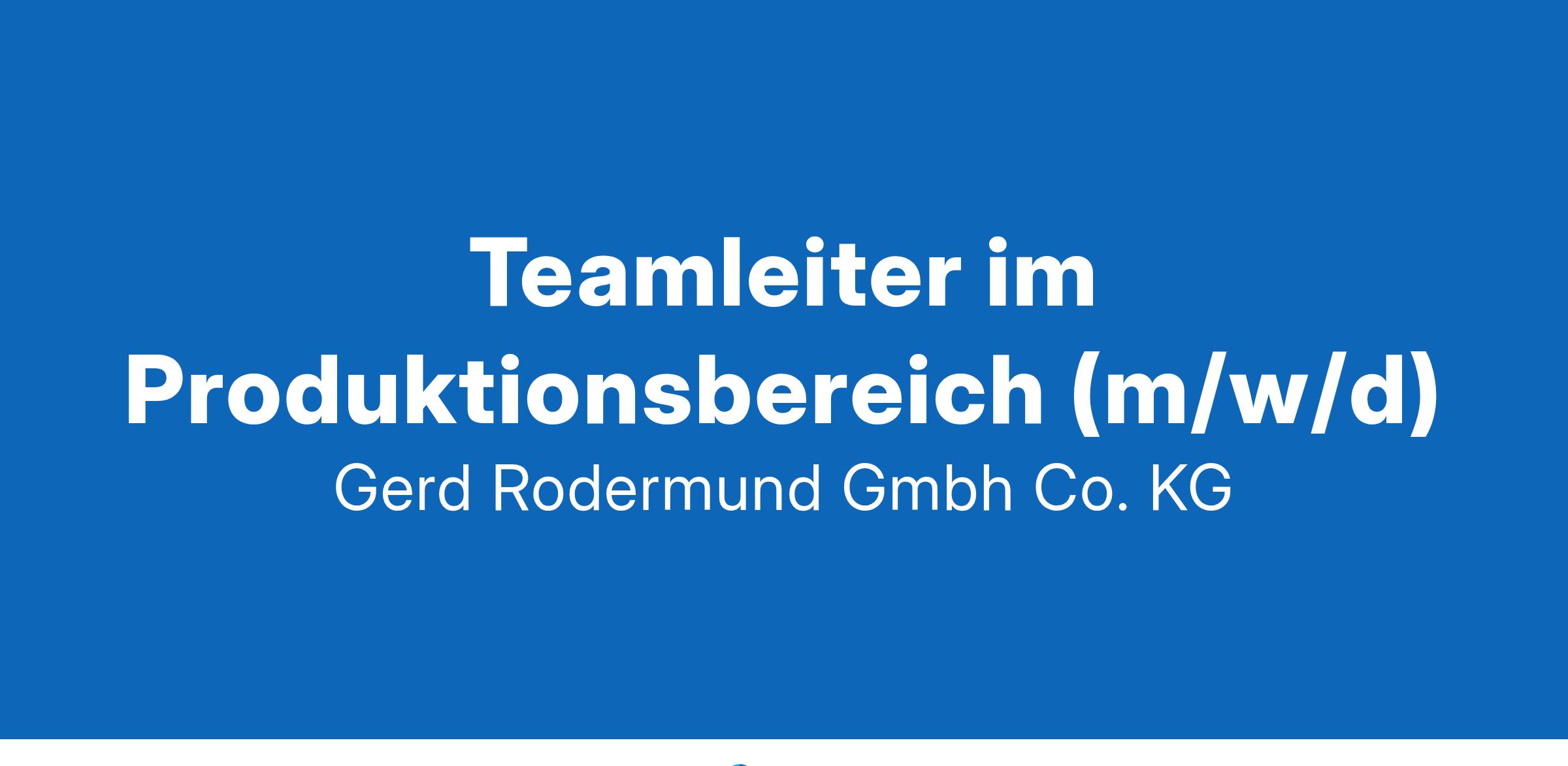 Teamleiter im Produktionsbereich (m/w/d) Mahlberg Vollzeit Wir sind ein führendes Unternehmen in unserer Branche innerhalb Europas. Die 1953 gegründete Unternehmung ist mit über 200 Mitarbeitern an 3 Standorten eine der größten Lieferanten von Saisonartikeln im Dekorationsbereich. Unsere Kunden sind die großen europäischen Handelsunternehmen. Wir bieten ein Vollsortiment zu den Saisons Frühjahr, Herbst und Weihnachten. Unser Portfolio wird durch ergänzende Dienstleistungen, wie die Bestückung von Verkaufsdisplays bis hin zu Full-Service-Konzepten abgerundet. Begleiten Sie unseren erfolgreichen Weg und verstärken Sie unser Team! Wir suchen zum nächstmöglichen Termin in Vollzeit einen qualifizierten, flexiblen und engagierten Teamleiter im Produktionsbereich (m/w/d) Ihre Aufgaben: Führen eines kleinen Produktionsteams Sicherstellung der termingerechten Realisierung von Fertigungsaufträgen Steuerung und Optimierung von Produktionsprozessen und Produktionszeiten Reporting und Einhaltung relevanter Produktionskennzahlen Umsetzung eines sicherheits-/qualitäts-/kostenbewussten Denkens und Handelns bei Mitarbeitern Motivation der Mitarbeiter im Verantwortungsbereich Ihr Profil: abgeschlossene Ausbildung erwünscht eigenständiges, zuverlässiges und termingerechtes Arbeiten sind Voraussetzung Durchsetzungsvermögen und Organisationsgeschick Flexibilität, Teamfähigkeit, Belastbarkeit sind Ihnen nicht fremd und Sie können auch selbst mit anpacken gute Word/Excel Kenntnisse (Warenwirtschaftsprogramm/SAP Kenntnisse von Vorteil, nicht Bedingung) Ihre Benefits: attraktives Vergütungspaket inkl. Sondervergütung Karriere- / Weiterbildungschancen zukunftssichere Arbeitsplätze in einem angenehmen Arbeitsklima gute Work-Life Balance, Gleitzeit, 30 Tage Urlaub p.a. Beitrag Fitnessclub allseits beliebte Firmenevents Wenn Sie an dieser Tätigkeit interessiert sind, freuen wir uns auf Ihre Bewerbung mit Angabe Ihrer Gehaltsvorstellung und des möglichen Eintrittstermins. Bewerbungen an: Gerd Rodermund GmbH & Co. KG Personalabteilung Schmiedeweg 6-8, 77972 Mahlberg Tel.: +49 (0) 7825 843-0 www.rodermund.de | bewerbung.gewerblich@rodermund.de Kontakt Tel.: +49 (0) 7825 843-0 bewerbung.gewerblich@rodermund.de Standort Mahlberg Gerd Rodermund GmbH & Co. KG Schmiedeweg 6-8 77972 Mahlberg www.rodermund.de