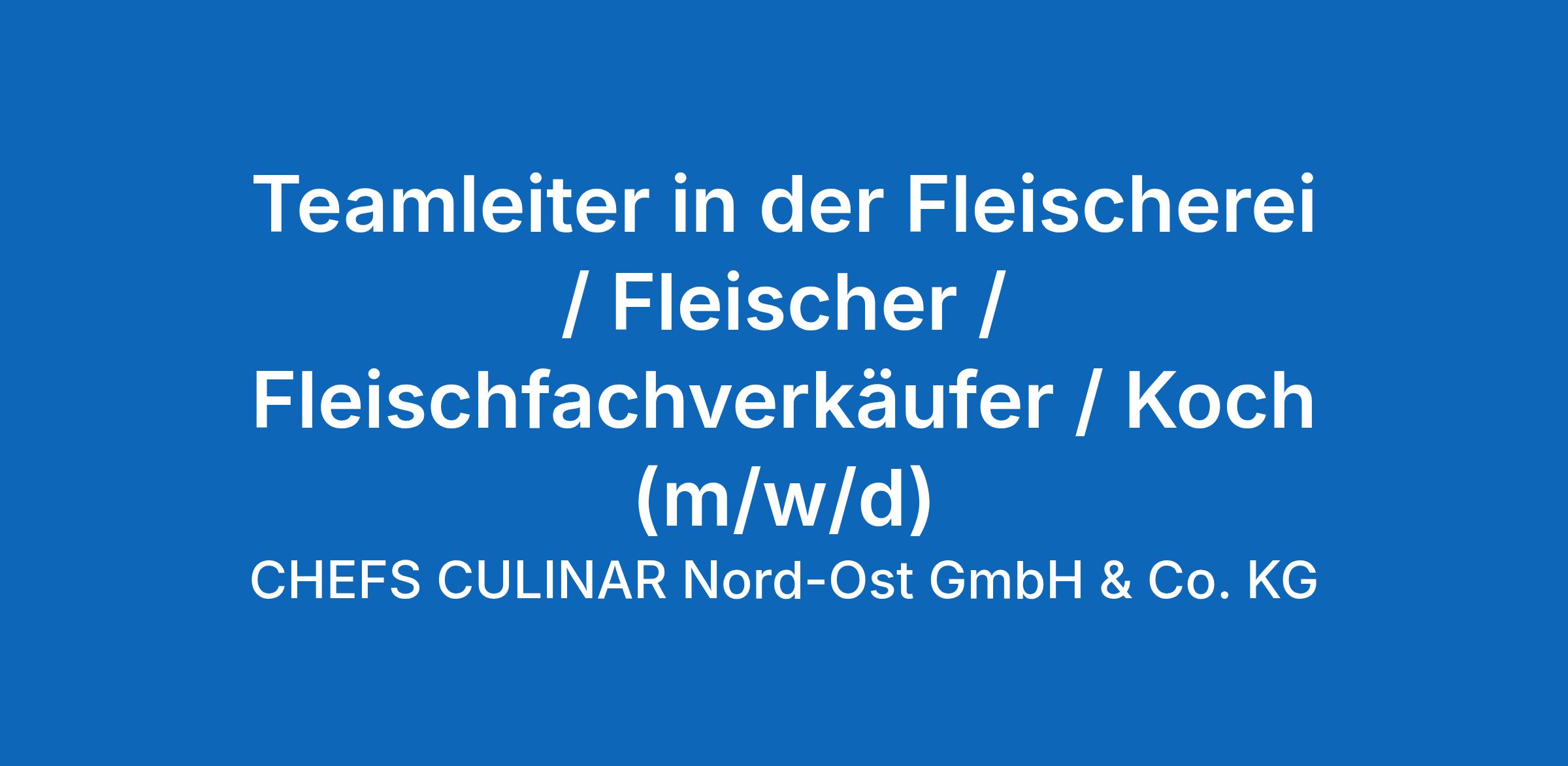 - Du hast mehrjährige Erfahrung in der Fleischerei oder im Lebensmittelbereich und bereits erste Führungserfahrungen gesammelt und /oder bist gelernter Fleischer/Koch.(m/w/d)