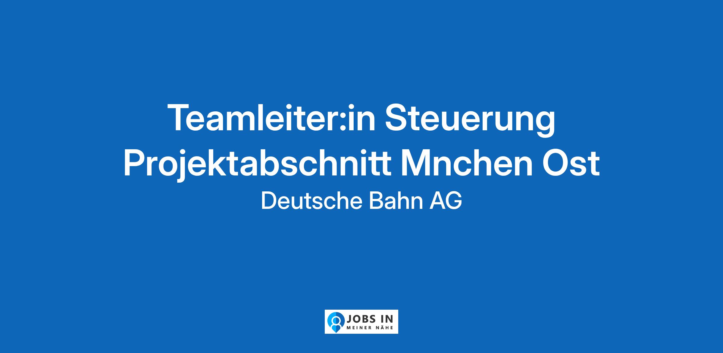 Zum nchstmglichen Zeitpunkt suchen wir dich als Teamkoordinator:in Steuerung (w/m/d) im Projektabschnitt Mnchen Ost (I.IIM 43) des Groprojekts 2. S-Bahn-Stammstrecke Mnchen bei der DB InfraGO AG in Mnchen.