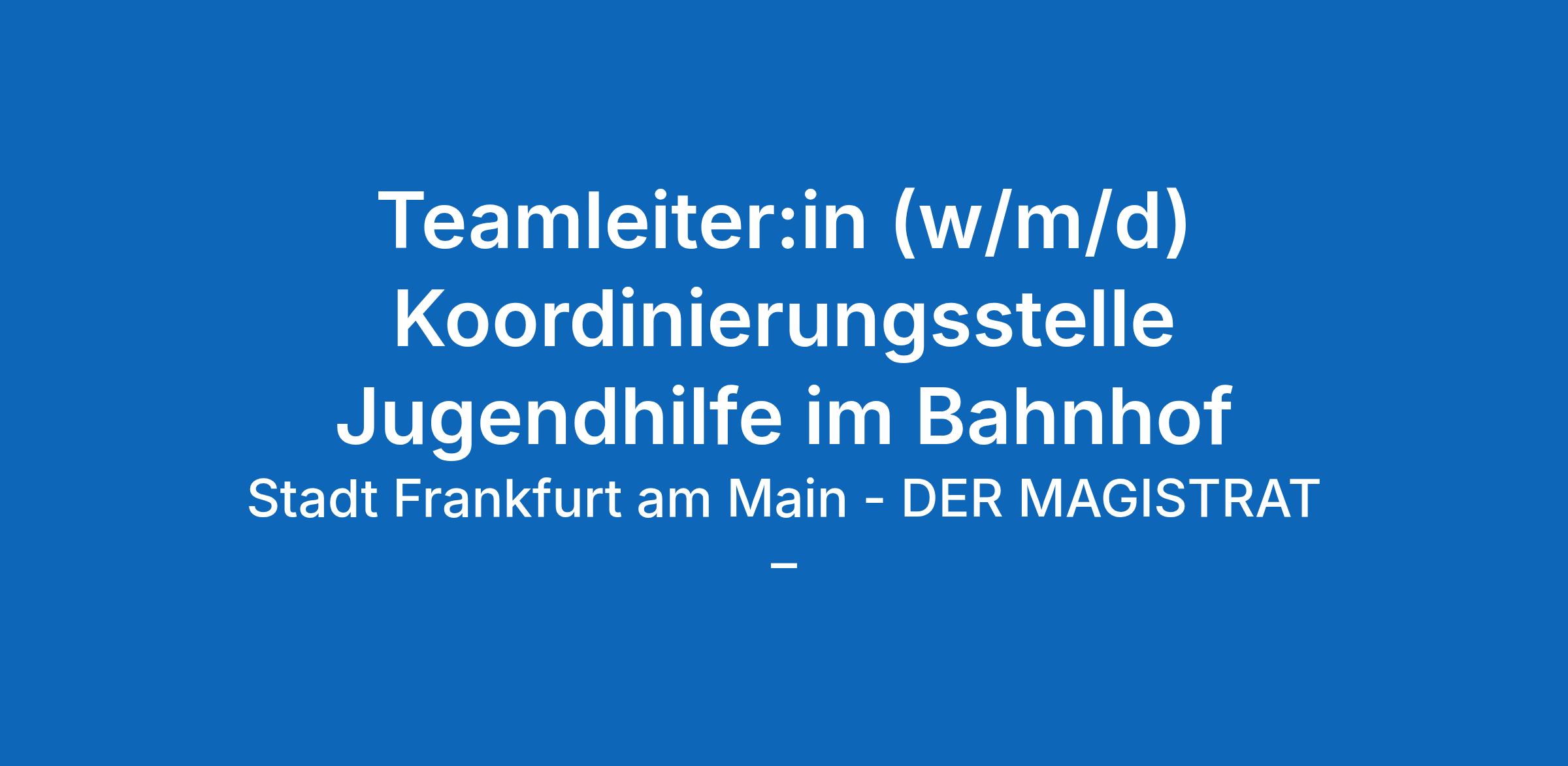 Jede Bewegung braucht Menschen, die überzeugt vorangehen. Darum suchen wir Sie als Teamleiter:in (w/m/d) Koordinierungsstelle Jugendhilfe im Bahnhof für unser Stadt-Up Frankfurt!