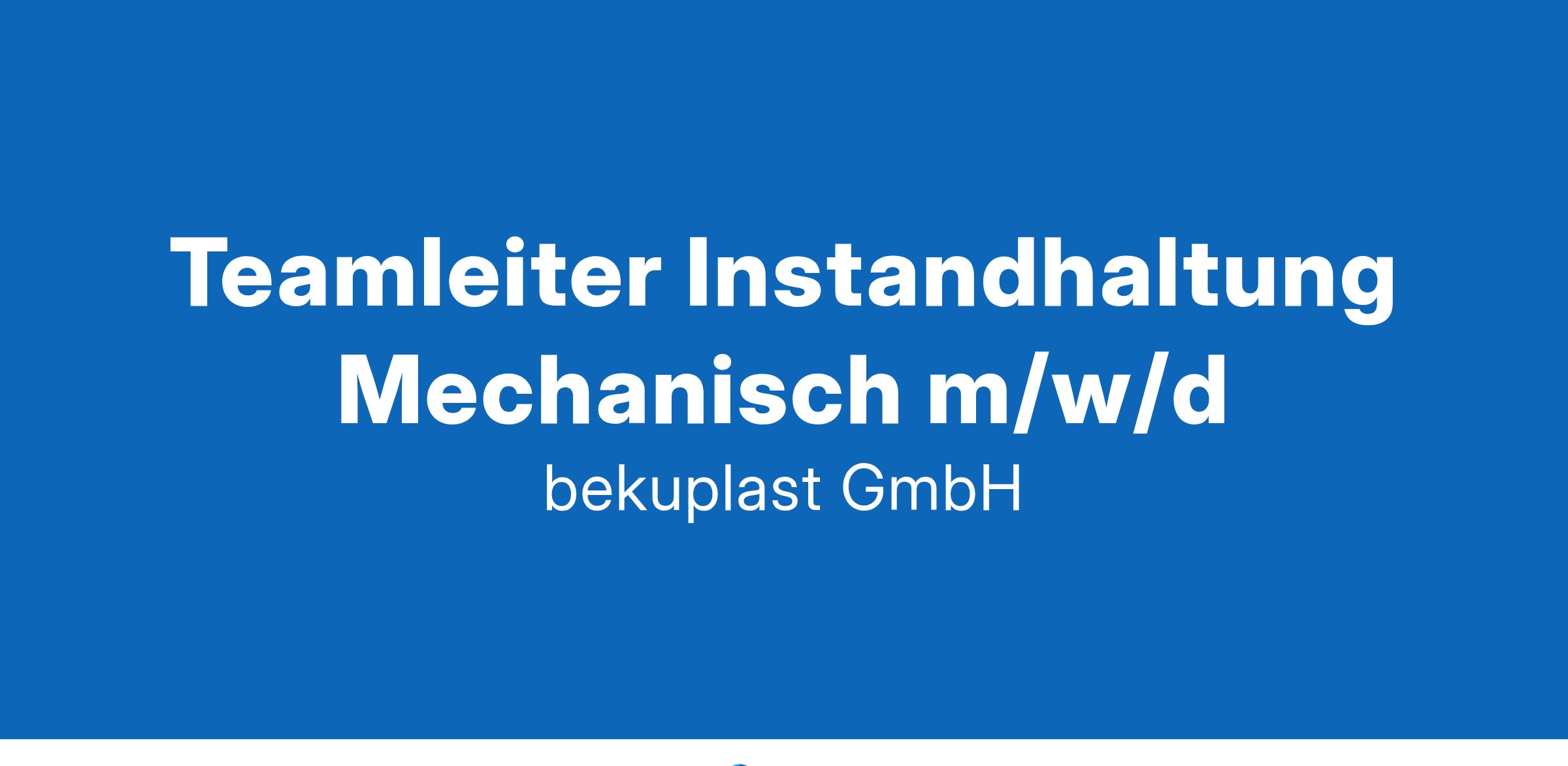 GEMEINSAM BEWEGEN Wir, die bekuplast Gruppe, sind mit unseren Mehrwegtransportverpackungen international erfolgreich. Wir überzeugen unsere Kunden mit innovativen, nachhaltigen Produkten sowie bester Qualität und Grund dafür ist das gesamte bekuplast-Team, das sich tagtäglich mit Engagement und Leidenschaft für unseren gemeinsamen Erfolg einsetzt. Zur Verstärkung unseres Teams suchen wir zum nächstmöglichen Zeitpunkt unbefristet und in Vollzeit einen: Teamleiter Instandhaltung Mechanisch* DEINE AUFGABEN Fachliche und disziplinarische Führung des unterstellten Teams Implementierung & Durchführung von Shopfloor-Management, 6S und weitere Leantools Verantwortung für die komplette Infrastruktur im technischen Bereich hinsichtlich Hydraulik, Pneumatik und Mechanik Arbeits- und Ressourcenplanung Einführung einer vorbeugenden Instandhaltung und TPM (Minimierung von Stillstandzeiten, Erhöhung der OEE) Aufbau, Inbetriebnahme und Wartung von neuen Maschinen und Anlagen Ansprechpartner für Lieferanten und Dienstleister im Bereich Werkstattausrüstung, Ersatzteilbeschaffung, Wartungsarbeiten etc. Übernahme unternehmerische Pflichten DEIN PROFIL Du hast eine abgeschlossene Ausbildung als Industriemechaniker oder Mechatroniker und eine Weiterbildung zum Industriemeister, Techniker oder eine vergleichbare Qualifikation. Du konntest bereits umfangreiche und langjährige Führungserfahrung sammeln mit direkter Mitarbeiterverantwortung. Du bringst mehrjährige Berufserfahrung in der industriellen Instandhaltung oder einer vergleichbaren Position mit. Du bist stark zieleorientiert und bringst die notwendige Änderungsbereitschaft und Umsetzungsstärke mit. Du hast ein ausgeprägtes Verständnis für Technik und Produktionsprozesse. Du bist in der Lage ein Team zu führen, zu motivieren und neue Akzente zu setzen. Teamfähigkeit, Zuverlässigkeit, Durchsetzungsstärke und Flexibilität runden dein Profil ab. Kommunikationsstärke und Sozialkompetenz zählen zu deinen Stärken. WIR BIETEN DIR Eine Position in einem global agierenden Familienunternehmen mit regionalen Wurzeln, das Innovation und Kreativität schätzt Ein dynamisches Arbeitsumfeld, in dem deine Ideen gehört, wertgeschätzt und umgesetzt werden Attraktive, wettbewerbsfähige Vergütung und zusätzliche zahlreiche Benefits 32 Tage Urlaub Eine offene, kollegiale Arbeitsatmosphäre, in der Teamarbeit und Zusammenarbeit großgeschrieben werden Die Sicherheit eines etablierten und wirtschaftlich gesunden Unternehmens in einem zukunftsträchtigen Markt VERSTÄRKE UNSER TEAM! Wenn du Interesse an dieser Tätigkeit hast, dann bewirb dich bitte über das Onlineformular auf unserer Website www.bekuplast.com/karriere. Bei weiteren Fragen wende dich gern an Olaf Zeisberg (Telefon +49 5944 9333-17). * Die Stellenbezeichnung meint nicht die männliche Variante, sondern steht für die geschlechtsneutrale Bezeichnung des Berufs. Willkommen sind Menschen egal welchen Geschlechts, welcher Herkunft, sexuellen Orientierung oder Religion. bekuplast GmbH · Industriestraße 1 · 49824 Ringe · Deutschland