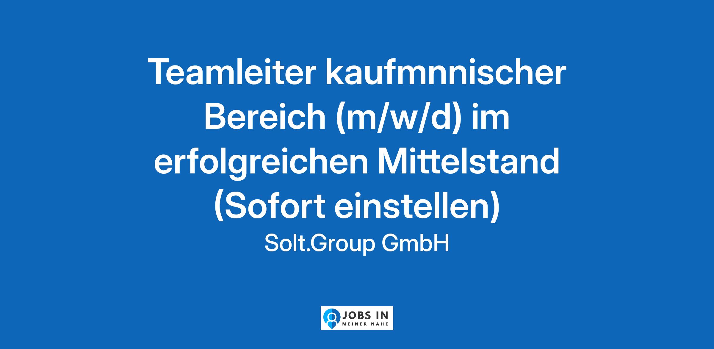 Teamleiter kaufmnnischer Bereich (m/w/d) im erfolgreichen Mittelstand (Sofort einstellen)
