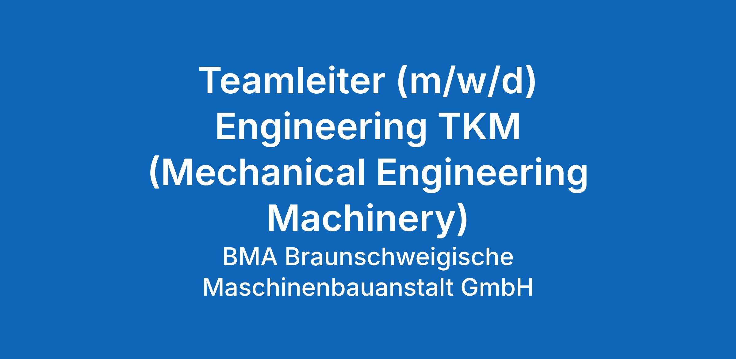 Teamleiter (m/w/d) Engineering TKM (Mechanical Engineering Machinery)