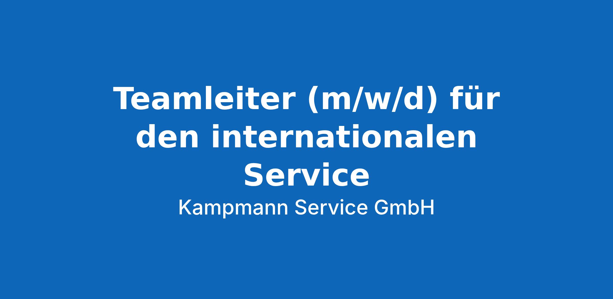 Kampmann heißt Service auf höchstem Niveau. Präzise. Kompetent. Verlässlich. Der vertriebliche Ausbau im Export sorgt für steigenden Bedarf an Dienstleistungen und Servicestrukturen im Ausland. Um diesen wachsenden Ansprüchen gerecht zu werden, erweitern wir unser Führungsteam am Standort Lingen und suchen einen: