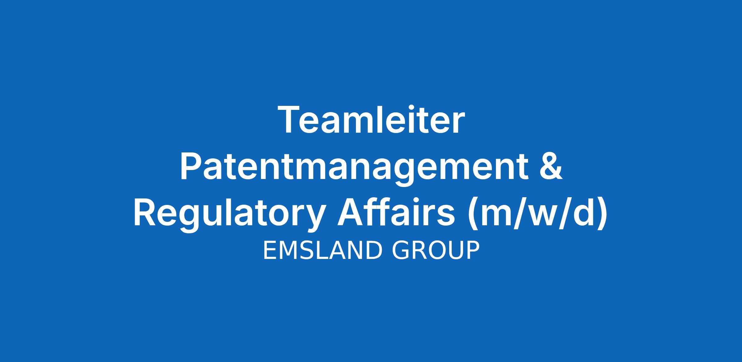 Teamleiter Patentmanagement & Regulatory Affairs (m/w/d)