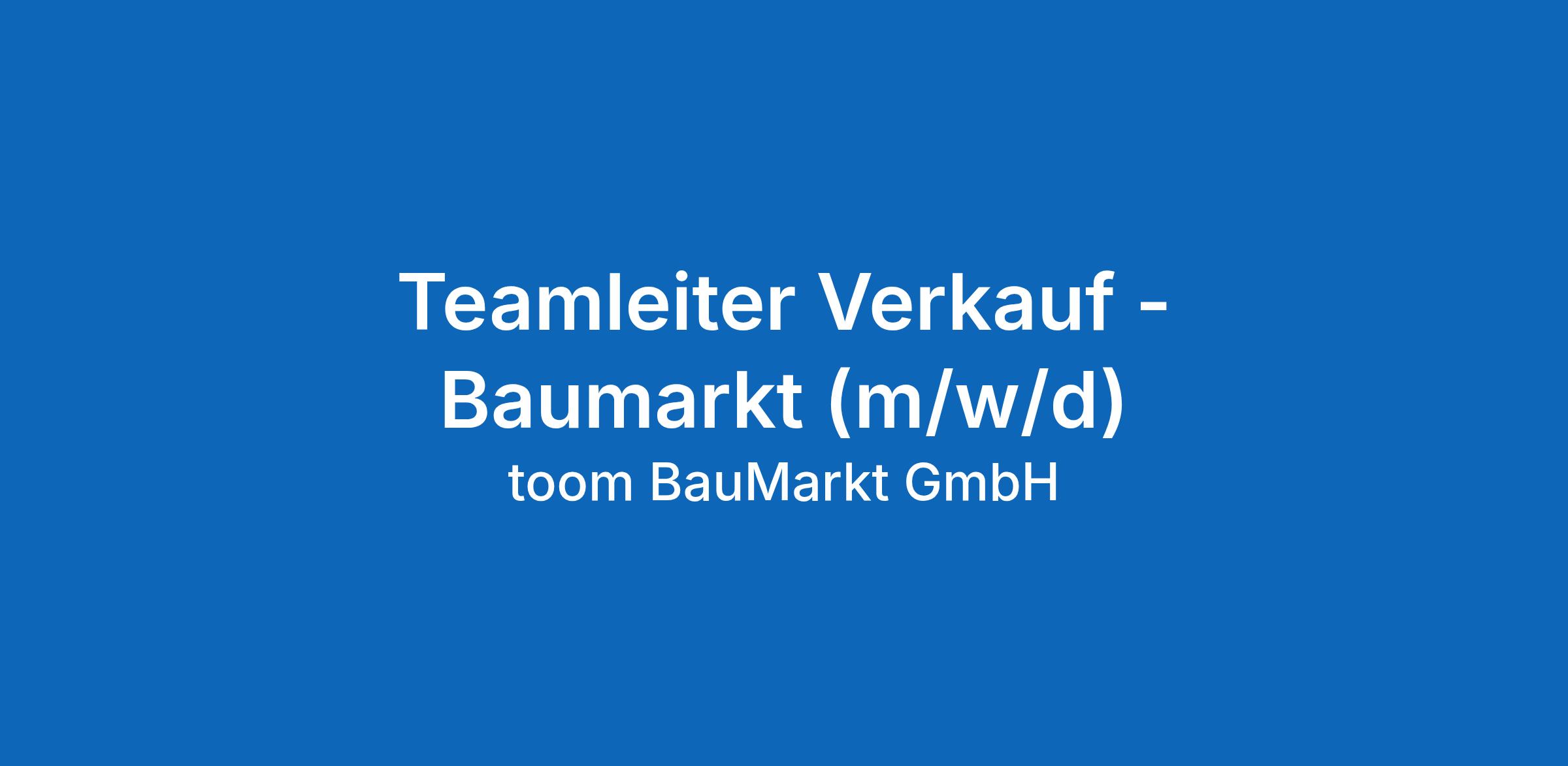 Teamleiter Verkauf - Baumarkt (m/w/d)