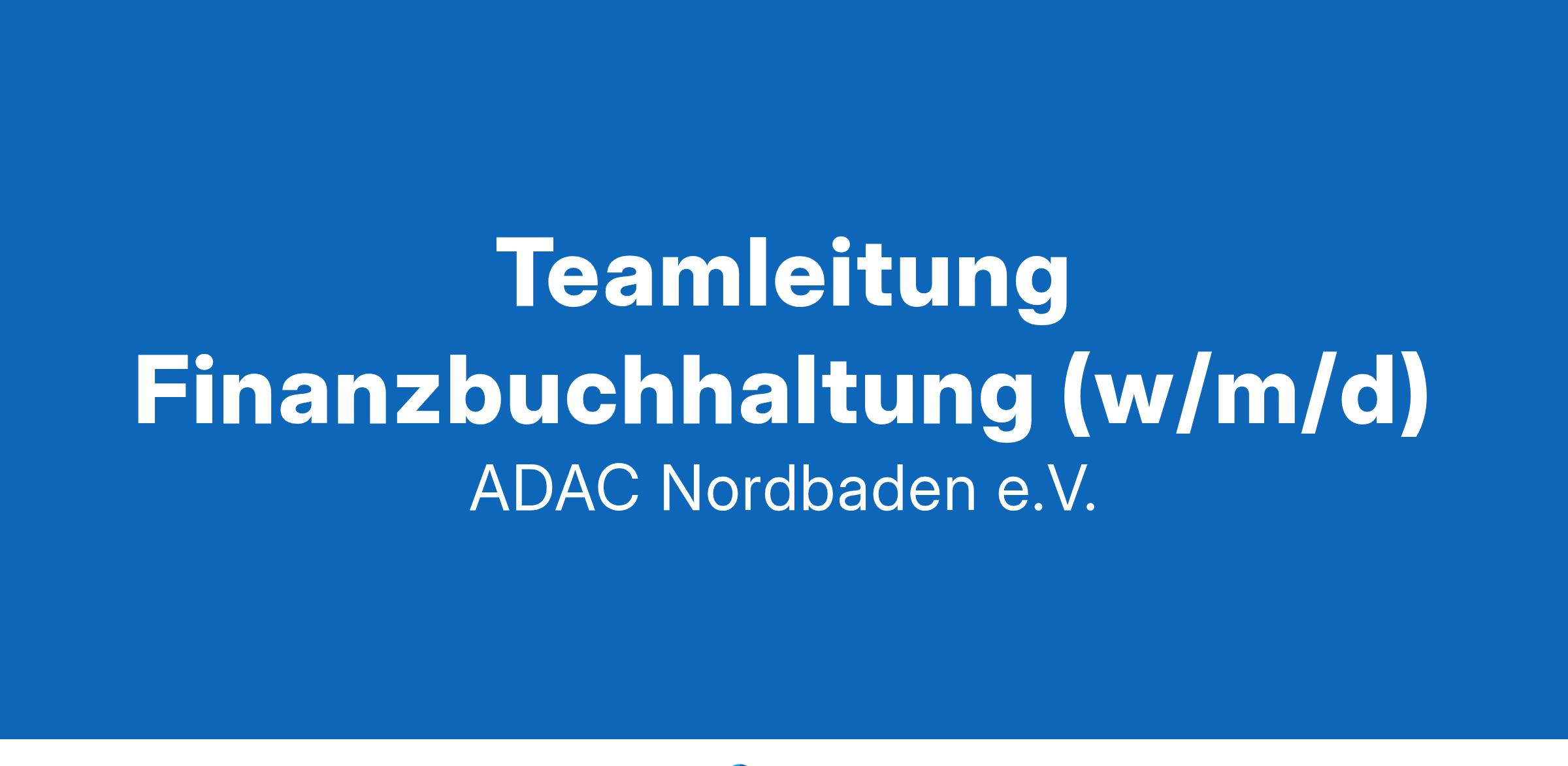 Teamleitung Finanzbuchhaltung (w/m/d)Der Regionalclub ADAC Nordbaden e.V. wurde 1947 gegründet. Mittlerweile arbeiten über 140 Mitarbeitende in unseren fünf Geschäftsstellen in Nordbaden. Hier kümmern wir uns um die Themen Mobilität, Reise & Urlaub, Versicherungen und natürlich die ADAC Mitgliedschaft. Wir legen Wert auf Chancengleichheit und freuen uns über Bewerbungen von Menschen mit Behinderung.