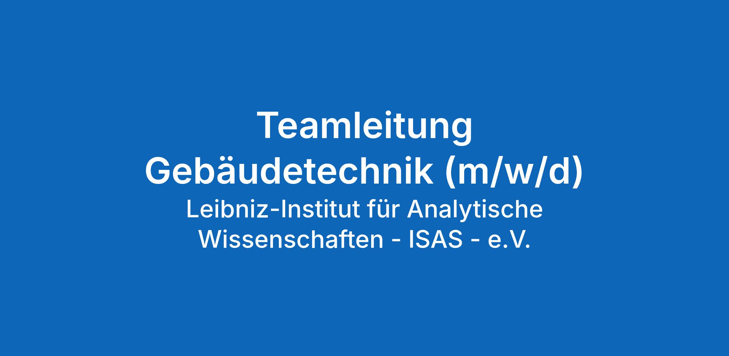 Das Leibniz-Institut für Analytische Wissenschaften – ISAS – e.V. entwickelt Analyseverfahren für die Gesundheitsforschung. Mit seinen Innovationen trägt es dazu bei, die Prävention, Frühdiagnose und Therapie von beispielsweise Herz-Kreislauf-Erkrankungen oder Krebs zu verbessern. Ziel des Instituts ist es, die personalisierte Therapie voranzutreiben. Dafür kombiniert das ISAS Wissen aus Biologie, Chemie, Informatik, Medizin, Pharmakologie und Physik. Das ISAS ist Mitglied der Leibniz-Gemeinschaft und wird durch die Bundesrepublik Deutschland und ihre Länder öffentlich gefördert.