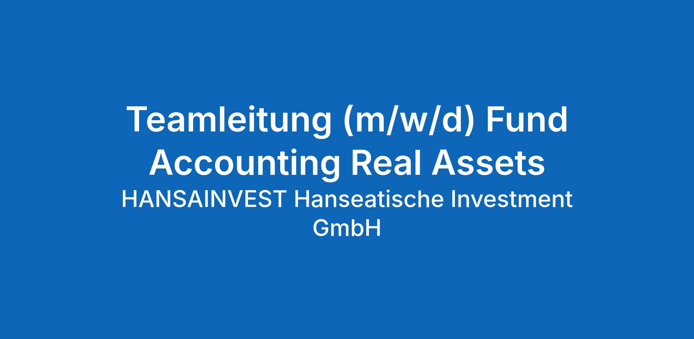 Gemeinsam mit Dir möchten wir das Team Fund Accounting Real Assets II für die HANSAINVEST weiter voranbringen. Dabei kannst Du Dich auf maximalen Gestaltungsspielraum verlassen und Deine Ideen und Erfahrungen einbringen. Wir sind offen für Neues!