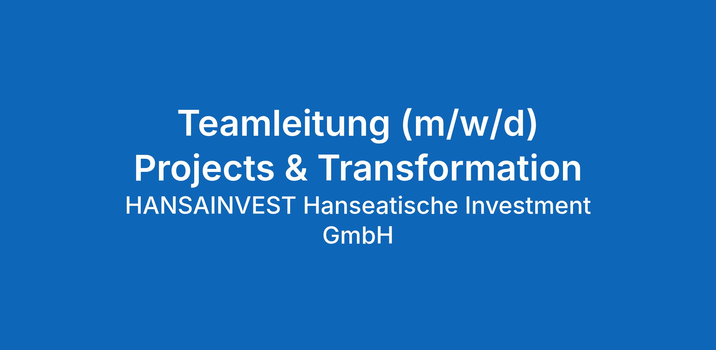 Gemeinsam mit Dir und den Kolleginnen und Kollegen möchten wir den Bereich Transformation und Projekte für die HANSAINVEST weiter voranbringen. Dabei kannst Du Dich auf maximalen Gestaltungsspielraum verlassen und Deine Ideen und Erfahrungen einbringen. Wir sind offen für Neues!