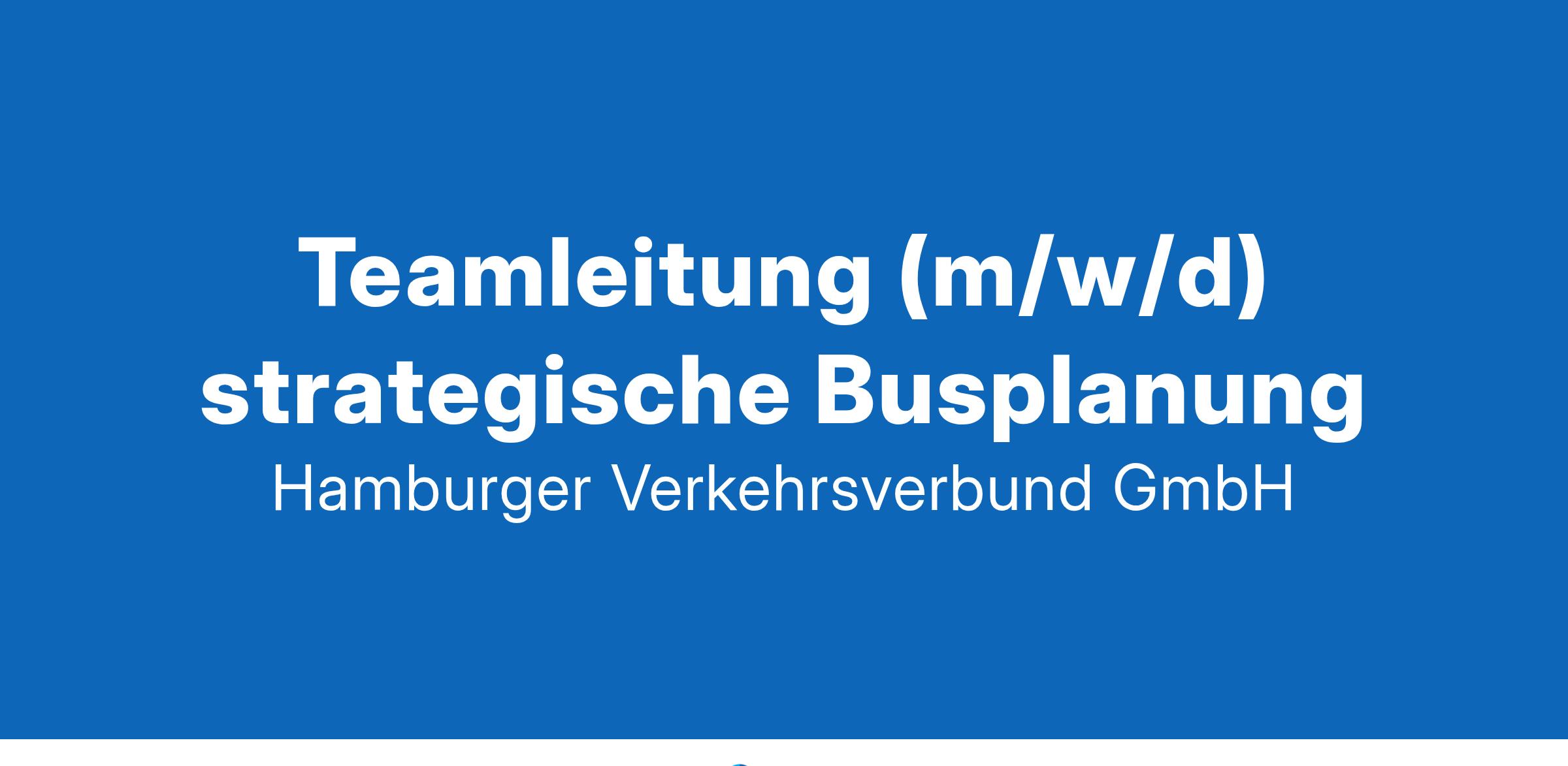 Nächster Halt: Karriere! Wir suchen Dich! Für drei Bundesländer, acht Kreise, 30 Verkehrsunternehmen und rund 3,67 Mio. Einwohner übernimmt der hvv das Management des öffentlichen Personennahverkehrs (ÖPNV) in der Metropolregion Hamburg. Mit rund 100 Mitarbeitenden ist die hvv GmbH die Regieorganisation und sorgt für einen leistungsfähigen sowie benutzerfreundlichen ÖPNV. Du willst die Zukunft des öffentlichen Nahverkehrs aktiv mitgestalten und bringst Leidenschaft für strategische Planung und innovative Mobilitätslösungen mit? Dann bist Du bei uns genau richtig! Wir suchen Dich als Teamleitung (m/w/d) strategische Busplanung zum Frühjahr 2025. Der Anstellungsvertrag ist unbefristet. Deine Aufgaben: Du entwickelst das Team weiter und führst es fachlich und disziplinarisch Du bist verantwortlich für die Steuerung und Umsetzung verbundübergreifender Projekte zur strategischen Weiterentwicklung des ÖPNV, insbesondere in den Themen Busverkehrsentwicklung, Nahverkehrspläne und Erschließungskonzepte Du koordinierst die Einführung und Weiterentwicklung von innovativen Mobilitätslösungen, wie On-Demand-Verkehr, und hast die Digitalisierung des ÖPNV stets im Blick Du steuerst die Analyse und Gestaltung der raum- und verkehrsspezifischen Prozesse und Instrumente, um die strategische Busplanung zukunftsfähig und nachhaltig auszurichten Du übernimmst als Schnittstellenfunktion die Abstimmung mit Ansprechpersonen im Verbund sowie mit anderen relevanten Stakeholdern Deine Qualifikation: Abgeschlossenes Studium im Bereich Verkehrsplanung, Mobilität, Verkehrswissenschaften oder eine vergleichbare Qualifikation Verständnis für raum- und verkehrsspezifische Zusammenhänge Analytisch-logisches Denkvermögen, ausgeprägte Auffassungsgabe und lösungsorientierte Herangehensweise Mehrjährige relevante Berufserfahrung Fundierte und praxiserprobte Kenntnisse in der Steuerung und Umsetzung von Projekten mit heterogenen Stakeholdern Ausgeprägte Kommunikationsfähigkeiten, um effektiv mit verschiedenen Teammitgliedern, Fachbereichen und externen Stakeholdern zu interagieren Was wir Dir bieten: Flexible Arbeitszeiten sowie Freizeitausgleich bei Mehrarbeit Möglichkeit, bis zu 80 % mobil zu arbeiten Kostenfreies hvv Deutschland-Ticket als Jobticket 30 Urlaubstage Betriebliche Altersvorsorge So geht's weiter: Nicole Thiel freut sich auf Deine Bewerbung, inklusive Gehaltsvorstellung und Verfügbarkeit, per E-Mail an: job@hvv.de Hamburger Verkehrsverbund GmbH | Frau Nicole Thiel | Brooktorkai 18 | 20457 Hamburg job@hvv.de | www.hvv.de Die hvv GmbH fördert die Gleichstellung aller Geschlechter. Das unterrepräsentierte Geschlecht wird bei gleicher Eignung, Befähigung und fachlicher Leistung bevorzugt berücksichtigt, sofern nicht in der Person eines Mitbewerbers liegende Gründe überwiegen. Wir freuen uns auf Dich!