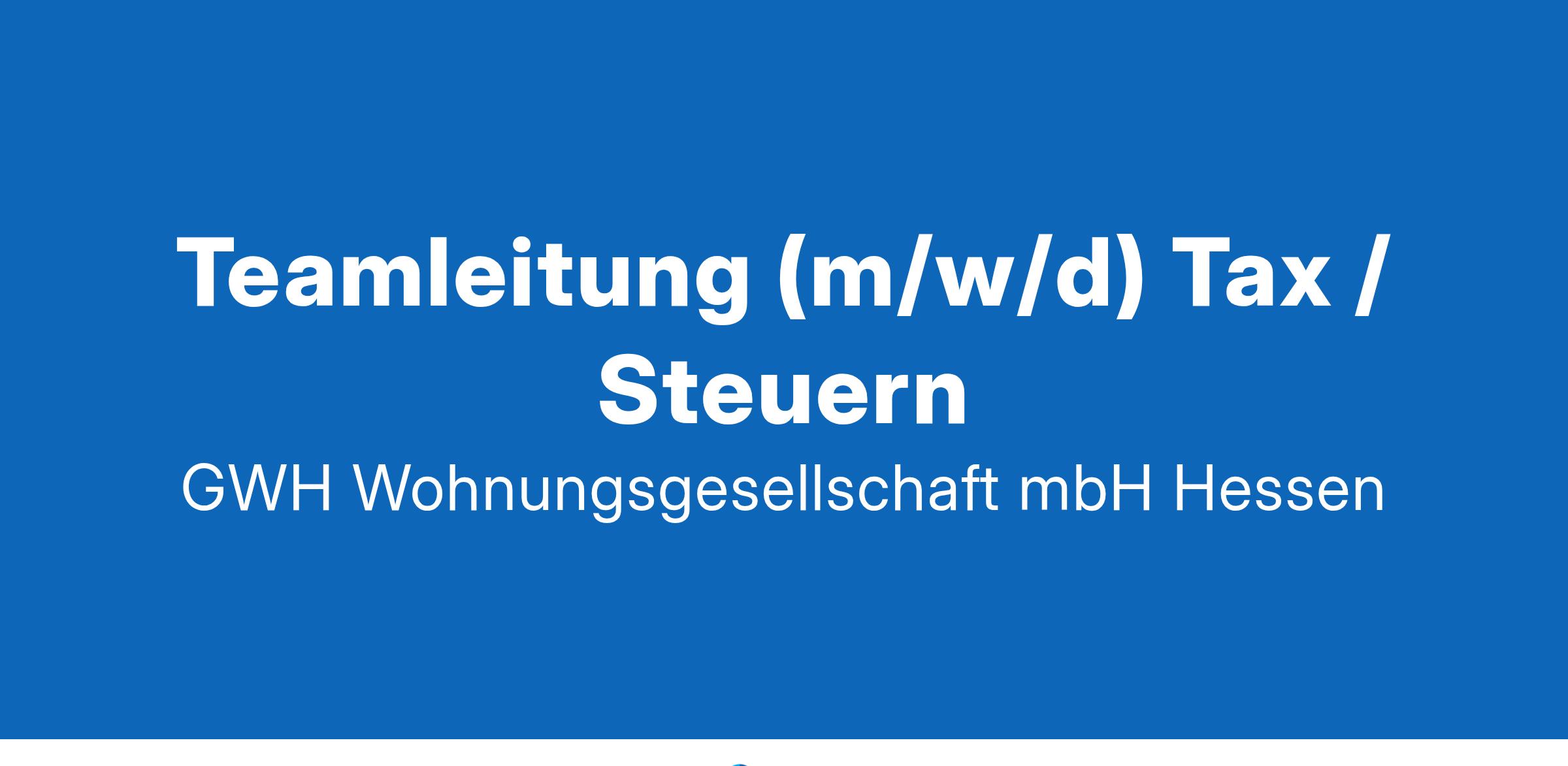 Als Tochter der Helaba gehört die GWH gemeinsam mit der GWH Bauprojekte GmbH, der GWH Digital GmbH, der GWH WertInvest GmbH, der GGM Gesellschaft für Gebäude-Management mbH, der Systeno GmbH und GWH WohnWerk GmbH zu den Großen der Immobilienbranche. Unser Hauptgeschäft ist es, Menschen Räume zum Leben zu geben. Mit unseren rund 600 Mitarbeitenden bewirtschaften wir insgesamt 50.000 Wohnungen für alle Altersklassen und zu fairen Preisen. Zur Verstärkung unseres Teams suchen wir zum nächstmöglichen Zeitpunkt eine Teamleitung (m/w/d) Tax/Steuern mit Spaß an der Zusammenarbeit im Team. Freuen Sie sich auf eine offene Unternehmenskultur bei einem sicheren Arbeitgeber, innovative Projekte und eine Work-Life-Balance, die Ihrer Karriere ganz neue Räume eröffnet. Werden auch Sie Teil unseres Teams als Teamleitung (m/w/d) Tax/Steuern in Frankfurt | Full-time employee | Unbefristet WAS SIE ERWARTET: Fachliche Führung des Bereichs Steuern in enger Zusammenarbeit mit der Abteilungsleitung Erstellung von Umsatzsteuervoranmeldungen und statistischen Meldungen Durchführung von Steuerberechnungen (laufender und latenter Steuern) sowie die Vorbereitung zur Erstellung von Steuererklärungen in enger Abstimmung im Steuerteam sowie dem Konzernrechnungswesen Pflege von steuerlichen Verträgen im bestehenden ERP-System Unterstützung bei der dezentralen Buchhaltung nach dem HGB und dem Steuerrecht Anfertigen von Entscheidungsvorlagen für die Abteilungs-, Bereichsleitung und Geschäftsführung Pflege und Aktualisierung des Tax-Compliance-Prozesses in Abstimmung mit den Kollegen aus den operativen Bereichen Ansprechpartner für die externe Steuerberatung, die Finanzverwaltung und die Kollegen sowie Mitarbeit in Projekt- und Arbeitsgruppen sowie Unterstützung bei der Beurteilung steuerlicher Fragestellungen WAS SIE MITBRINGEN: Erfolgreich abgeschlossenes betriebswirtschaftliches Studium bzw. eine kaufmännische Ausbildung mit entsprechendem Schwerpunkt und Praxiserfahrung Weiterbildung zum Steuerberater/Steuerfachwirt (m/w/d) oder Bilanzbuchhalter (m/w/d) ist wünschenswert Fundierte Berufserfahrung in der Immobilienwirtschaft im Bereich Steuern ist von Vorteil Sicherer Umgang mit MS Office, SAP S/4HANA und DefTax Sehr gute kommunikative und analytische Fähigkeiten sowie eine hohe Zahlenaffinität gepaart mit einer zuverlässigen, eigenverantwortlichen und zielorientierten Arbeitsweise Engagierter und kollegialer Teamplayer (m/w/d) WAS WIR IHNEN BIETEN: Modernes Arbeitsumfeld: Virtuelle Teamarbeit, neueste Ausstattung inkl. iPads, mobiles Arbeiten und flexible Arbeitszeiten bei einer 37-Stundenwoche, lebensphasenbewusste Unternehmenskultur mit der Auszeichnung „audit berufundfamilie“ seit 2009. Willkommen im Team: Eigenverantwortlicher Aufgabenbereich mit kreativen Freiräumen. Gutes Betriebsklima und toller Kollegenzusammenhalt. Rund 90% Weiterempfehlungsquote auf kununu. Perspektiven: Individuelle Förderung durch vielfältige Weiterbildungsangebote und regelmäßige Trainings. Attraktives Leistungspaket: Tarifgebundene Vergütung, jährliche Erfolgsbeteiligung, Urlaubs- und Weihnachtsgeld, arbeitgeberfinanzierte betriebliche Altersversorgung, 30 Tage Jahresurlaub zzgl. Heiligabend und Silvester, Deutschland-Ticket für 24 € im Monat. Reisekostenerstattung in Höhe von bis zu 0,66 EUR pro Kilometer bei Dienstfahrten mit dem privaten PKW. Bei der Wohnungssuche können wir Sie unterstützen. Klingt das nach neuen Räumen für Ihre Karriere? Dann freuen wir uns auf Ihre Bewerbung über unser Online-Portal. Dateien können nur als PDF hochgeladen werden. Da wir uns als nachhaltiges Unternehmen verstehen, bitten wir um Verständnis, dass Bewerbungen, die uns in Papierform erreichen, nicht berücksichtigt werden können. Für Rückfragen steht Ihnen Sandra Diaz Rivero telefonisch unter +496997551-2145 zur Verfügung. Alle Informationen zum Datenschutz finden Sie unter www.gwh.de/datenschutz. Wir arbeiten bei der Stellenbesetzung ausschließlich mit von uns ausgewählten Vertragspartnern zusammen. Telefonische Anfragen werden nicht bearbeitet. Bewerberprofile, die uns ohne Auftrag zugesendet werden, werden ungesehen gelöscht. Fremde AGB werden nicht akzeptiert. GWH Wohnungsgesellschaft mbH Hessen | Westerbachstr. 33 | 60489 Frankfurt am Main | www.gwh.de Werden auch Sie Teil unseres Teams als Teamleitung (m/w/d) Tax/Steuern in Frankfurt | Full-time employee | Unbefristet Als Tochter der Helaba gehört die GWH gemeinsam mit der GWH Bauprojekte GmbH, der GWH Digital GmbH, der GWH WertInvest GmbH, der GGM Gesellschaft für Gebäude-Management mbH, der Systeno GmbH und GWH WohnWerk GmbH zu den Großen der Immobilienbranche. Unser Hauptgeschäft ist es, Menschen Räume zum Leben zu geben. Mit unseren rund 600 Mitarbeitenden bewirtschaften wir insgesamt 50.000 Wohnungen für alle Altersklassen und zu fairen Preisen. Zur Verstärkung unseres Teams suchen wir zum nächstmöglichen Zeitpunkt eine Teamleitung (m/w/d) Tax/Steuern mit Spaß an der Zusammenarbeit im Team. Freuen Sie sich auf eine offene Unternehmenskultur bei einem sicheren Arbeitgeber, innovative Projekte und eine Work-Life-Balance, die Ihrer Karriere ganz neue Räume eröffnet.
