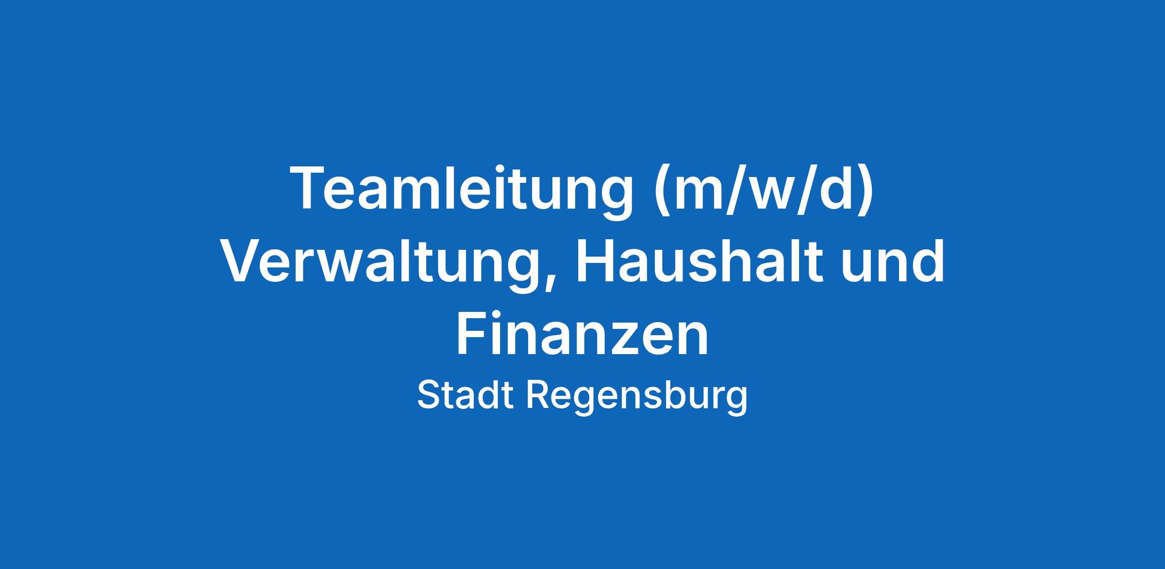 Gemeinsam mit der Stadt Regensburg die Zukunft gestalten! Wir suchen für das Amt für Brand- und Katastrophenschutz eine Teamleitung (m/w/d) in der Abteilung für zentrale Aufgaben und Verwaltung.
