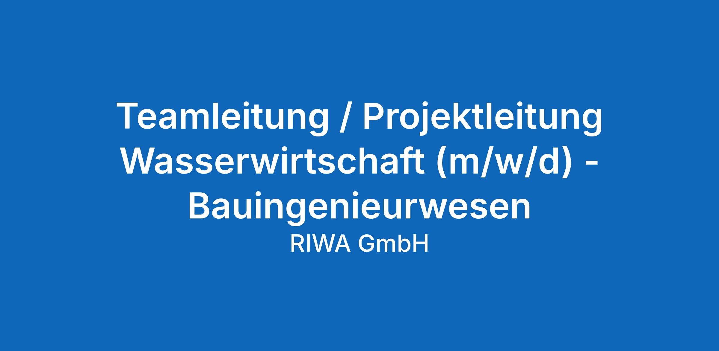 Teamleitung / Projektleitung Wasserwirtschaft (m/w/d) – Bauingenieurwesen