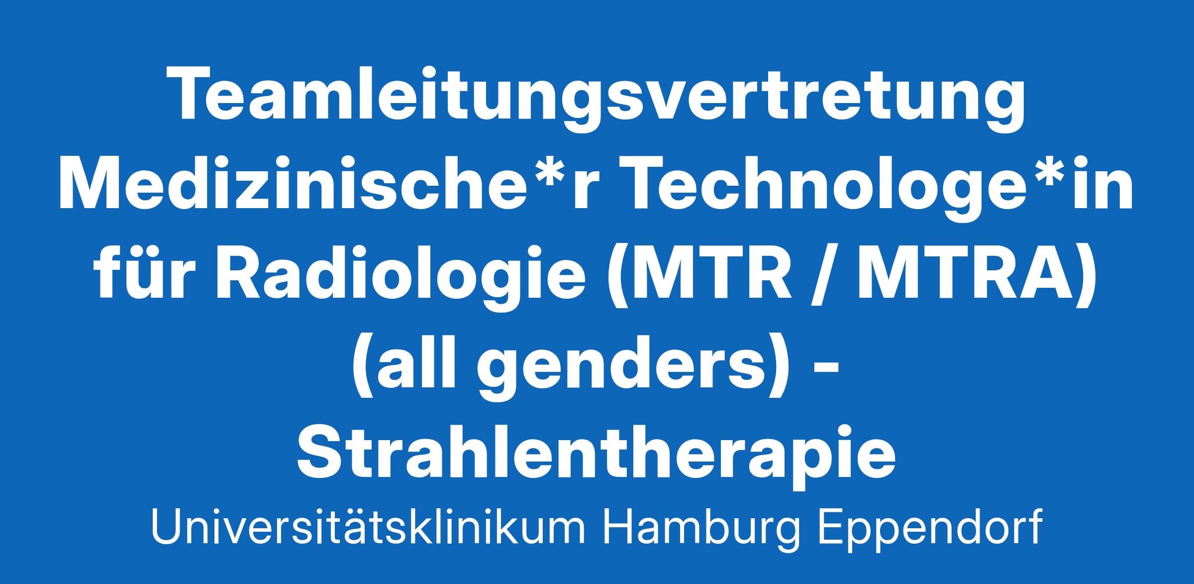 "Mich selbst voranbringen – bis zu meinem Traumjob." Christiane M.: Medizinisch-technische Radiologieassistentin Teamleitungsvertretung Medizinische:r Technolog:in für Radiologie (MTR / MTRA) (all genders) - Strahlentherapie Vollzeit/Teilzeit | Unbefristet | Arbeitsort: Hamburg Eppendorf UKE_Zentrum für Onkologie Gemeinsam besser. Fürs Leben. Wir sind das Universitätsklinikum Hamburg-Eppendorf (UKE) – und stehen für exzellente Kompetenz in Forschung, Lehre und der vollumfänglichen Gesundheitsversorgung in unseren Kliniken. Unsere rund 15.300 Mitarbeiter:innen streben jeden Tag aufs Neue danach, mit ihrem Beitrag die Welt ein bisschen gesünder zu machen. Es ist unser Anspruch, eine der führenden Universitätskliniken zu sein – und gleichzeitig der beste Arbeitgeber unserer Branche. So glauben wir im UKE fest daran, dass erfolgreiches und erfüllendes Arbeiten im Einklang mit den persönlichen Bedürfnissen und individuellen Lebensentwürfen der Mitarbeitenden stehen sollte. Und so unterschiedlich diese sind, so vielfältig ist unser Angebot an individuellen Lösungen. Willkommen im UKE. Das macht die Position aus Hier können Sie sich zum/zur Expert:in entwickeln! Es erwartet Sie ein interdisziplinäres strahlentherapeutisches Arbeitsumfeld auf höchstem klinischem und wissenschaftlichem Niveau. Unseren Patient:innen stehen sämtliche moderne Strahlentherapieverfahren zur Verfügung. Die MTR/MTRA werden an allen Arbeitsplätzen der Strahlentherapie im Rotationsverfahren eingewiesen. Sie können Ihr neues Team bei einer Hospitation persönlich kennenlernen. Gemeinsam wachsen wir mit Ihnen in Ihre neue Rolle - mit Einführungsveranstaltungen, einem individuellen Einarbeitungsplan sowie einem sehr kollegialen Arbeitsklima. Ihre Aufgaben: Unterstützung des/der leitenden MTR/MTRA und Mitwirkung bei: Gestaltung des Bestrahlungsablaufes im Sinne der Organisationsentwicklung fachliche und disziplinarische Mitarbeiterführung bedarfsorientierte Personaleinsatzplanung Umsetzung der vereinbarten Ambulanzziele Einhaltung der Hygienestandards Erfassung und Planung von internen/externen Fort- und Weiterbildungen Weiterentwicklung von Einarbeitungskonzepten Zusammenarbeit mit angrenzenden Berufsgruppen Nach der Einarbeitungszeit das selbstständige Arbeiten mit Hochvolttherapiegeräten der Firmen Varian/Siemens, der TomoTherapy sowie der Brachytherapie Durchführung sämtlicher Bestrahlungstechniken wie z. B. IGMRT, Stereotaxie und Ganzkörperbestrahlungen unter Einhaltung der betrieblichen Vorgaben des Strahlenschutzes CT- gestützte Bestrahlungsplanung und Simulation Strukturierung und Umsetzung strahlentherapeutischer Behandlungsabläufe in Kooperation mit dem ärztlichen Dienst, den Medizinphysiker:innen, der Anmeldung und der Station Die Stelle interessiert Sie und Sie möchten das Team schon mal kennenlernen? Dann klicken Sie sich in unsere jukebox und schauen sich unseren Bereich hier an. Darauf freuen wir uns Wir freuen uns auf neue Teamplayer mit abgeschlossener Ausbildung zum/zur Medizinischen Technolog:in für Radiologie bzw. Medizinisch-technischen Radiologieassistent:in und aktueller Fachkunde – mit und ohne Berufserfahrung sowie mit abgeschlossener Weiterbildung zur Leitung einer Funktionseinheit oder der Bereitschaft diese kurzfristig zu absolvieren. Verantwortungsbewusstsein, Einfühlungsvermögen und Entscheidungsfreude Kommunikationsfähigkeiten und Kooperationsbereitschaft mit anderen Berufsgruppen Wirtschaftliches Denken und Handeln Das bieten wir Attraktive Bezahlung nach TVöD/VKA Krisensicherer Arbeitsplatz, sinnstiftende Tätigkeit, wertschätzendes Miteinander Strukturierte Einarbeitung und offener Wissensaustausch im Team Umfangreiche Fort- und Weiterbildungsprogramme an unserer UKE-Akademie für Bildung und Karriere Möglichkeiten zur Mitgestaltung unserer Personalpolitik „UKE INside“ in berufsgruppen- und hierarchieübergreifenden Projekten Nachhaltig unterwegs: Zuschüsse zum Deutschlandticket als Jobticket und Dr. Bike Fahrradservice; Option zum Dienstrad-Leasing Familienfreundliches Arbeitsumfeld: Kooperation zur Kinderbetreuung, kostenlose Ferienbetreuung, Beratung für Beschäftigte mit pflegebedürftigen Angehörigen Ausgezeichnete Gesundheits-, Präventions- und Sportangebote Unser Mitarbeitendenrestaurant bietet eine reiche Auswahl an kulinarischen Angeboten; weitere Angebote gibt es in den „Health Kitchen“ Cafés und Bistros und in einem Supermarkt direkt auf dem Gelände Unser Auftrag: Wissen – Forschen – Heilen durch vernetzte Kompetenz Kontakt ins UKE Wir freuen uns auf eine aussagekräftige Bewerbung bis zum 03. Februar 2025. Kontakt zum Fachbereich Frau Anne Overlach, Pflegerische Zentrumsleitung // Frau Sarah Sprenger, Assistenz Pflegerische Zentrumsleitung +49 (0) 40 7410-52267 // 015222825809 a.overlach@uke.de // s.sprenger@uke.de Kontakt zum Recruiting Recruiting Team +49 (0) 40 7410-52599 Eine Einstellung ist nur möglich, wenn nach den jeweils geltenden (gesetzlichen und medizinischen) Vorgaben gegen das Masernvirus ein vollständiger Immunisierungs- bzw. Immunitätsnachweis vorliegt. Dies ist vor Beschäftigungsbeginn durch entsprechende Unterlagen (z.B. Impfausweis) nachzuweisen. Wir leben Diversität und schätzen Vielfalt Wir bieten ein Arbeitsumfeld, das unabhängig von Alter, Geschlecht, sexueller Identität, Behinderung, ethnischer und sozialer Herkunft oder Religion gleiche Chancen ermöglicht. Dieses bestätigen wir mit dem Beitritt zur Charta der Vielfalt. Wir streben ausdrücklich eine Erhöhung des Anteils von Frauen in Führungspositionen an, insbesondere beim wissenschaftlichen Personal in Forschung und Lehre. Gleiches gilt im Falle einer Unterrepräsentation eines Geschlechts im ausschreibenden Bereich. Personen mit Schwerbehinderung werden bei gleicher Eignung, Befähigung und fachlicher Leistung vorrangig berücksichtigt. Hier mehr zum Thema Diversity im UKE erfahren