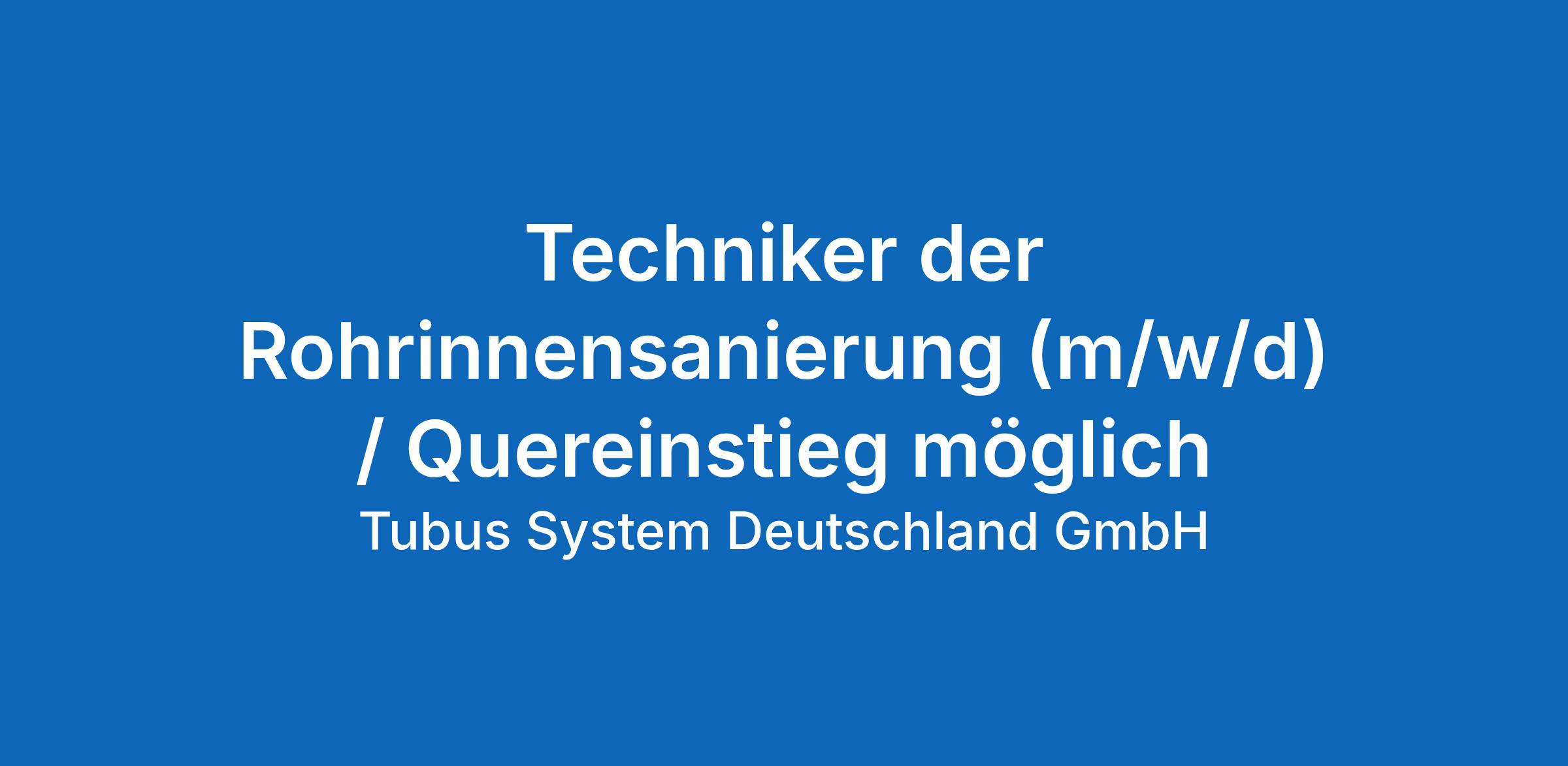 Die Tubus System Deutschland GmbH – ein innovatives Unternehmen im Bereich der Sanierung innerhäuslicher Abwasserleitungen – sucht einen