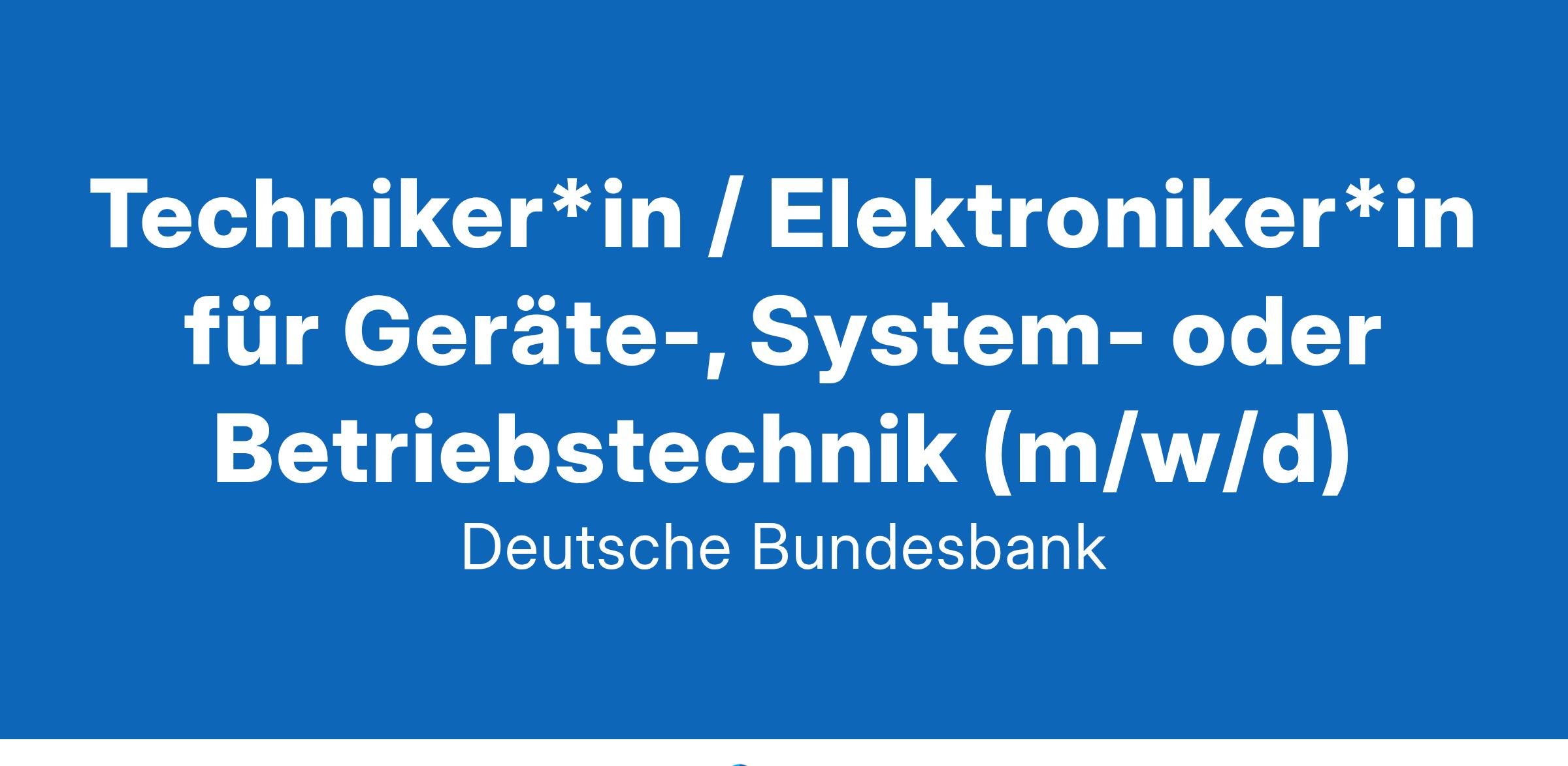 Die Deutsche Bundesbank ist eine besondere Bank. Wir sorgen mit der EZB und den anderen europäischen Zentralbanken für einen stabilen Euro. Dafür und für weitere Zentralbankaufgaben brauchen wir eine große Vielfalt von Spezialistinnen und Spezialisten in handwerklichen Arbeitsbereichen, damit die Institution funktionieren kann. Werden auch Sie Teil von etwas Besonderem und finden Sie ein sicheres berufliches Zuhause! Techniker*in/Elektroniker*in für Geräte-, System- oder Betriebstechnik Arbeitsort Frankfurt am Main Arbeitszeit Vollzeit (Teilzeit ist grundsätzlich möglich), unbefristet Beginn ab sofort Stellen-ID 2025_0053_02 Arbeit von besonderem Wert: Ihr Einsatz bei uns Gemeinsam im Team betreuen Sie unsere Anlagen der Gefahrenmeldetechnik in einem Großgebäudekomplex. Als Anlagenbetreiber*in führen Sie Inbetriebnahmen, Übernahmen, Wartungs- und Instandsetzungsarbeiten sowie Anpassungen an sicherheitsrelevanten Anlagen aus. Sie organisieren und koordinieren die Wartungsplanung, führen regelmäßige Prüfungen durch und analysieren sowie beheben Störungen effizient. Besondere Werte: Ihre Qualifikationen Abgeschlossene Ausbildung in Geräte-, System- oder Betriebstechnik Gute Kenntnisse in der Gefahrenmeldetechnik mit mehrjähriger Erfahrung Erfahrung in der Betreuung vernetzter, analoger und IT-fähiger Anlagensysteme ist von Vorteil Bereitschaft und gesundheitliche Eignung für Arbeit unter besonderen zeitlichen Anforderungen (planbare, vergütete Rufbereitschaft) Teamfähigkeit, Einsatzbereitschaft und Serviceorientierung Gute Deutschkenntnisse in Wort und Schrift Wertvolle Arbeit verdient besondere Vorteile Vergütung & Perspektiven Vergütung in Anlehnung an den TVöD auf Basis der Entgeltgruppe E 8, zzgl. Bankzulage, zukunftsorientierter Arbeitsplatz im öffentlichen Dienst mit verlässlichen Arbeitsbedingungen, unbefristetes Arbeitsverhältnis, abwechslungsreiche Aufgaben, umfangreiches Weiterbildungsangebot New Work Gute technische Ausstattung (z. B. Smartphone, Notebook), Arbeitszeit: 39 Stunden/Woche, 30 Tage Urlaub, Vereinbarkeit von Beruf und Familie, Work-Life-Balance Zusatzleistungen Kostenloses Deutschlandticket als Jobticket, gute Verkehrsanbindung (Bus & Bahn), kostenlose Parkplätze, betriebliches Gesundheitsmanagement, Gesundheits- und Sportkurse Wir erwarten die Bereitschaft, sich einer Sicherheitsüberprüfung nach dem Sicherheitsüberprüfungsgesetz des Bundes (SÜG) zu unterziehen. Wollen Sie unser Team bereichern? Dann sind wir schon sehr gespannt auf Ihre Bewerbung. Falls Sie im Voraus noch Fragen haben, wenden Sie sich einfach an die zuständige Ansprechperson. Ihre Fragen zur Bewerbung Christoph Trautvetter, 069 9566-36927 jobs@bundesbank.de Ihre Fragen zum Aufgabengebiet Karl Pudwitz, 069 9566-35740 karl.pudwitz@bundesbank.de Bitte bewerben Sie sich bis zum 13.02.2025 mit der Stellen-ID 2025_0053_02 über unser Online-Tool. Vielfalt und Chancengleichheit sind uns wichtig. Schwerbehinderte Menschen werden bei gleicher Eignung bevorzugt berücksichtigt. Auch fördert die Deutsche Bundesbank die berufliche Gleichstellung von Frauen und Männern insbesondere bei der Besetzung von Führungspositionen. Daher begrüßen wir besonders Bewerbungen von Frauen. Sie sind uns in Ihrer ganzen Individualität herzlich willkommen! Wir freuen uns darauf, Sie mit Ihrer Bewerbung näher kennenzulernen. Weitere Informationen über den Arbeitgeber Bundesbank finden Sie unter www.bundesbank.de/karriere. Deutsche Bundesbank | Wilhelm-Epstein-Straße 14 | 60431 Frankfurt am Main