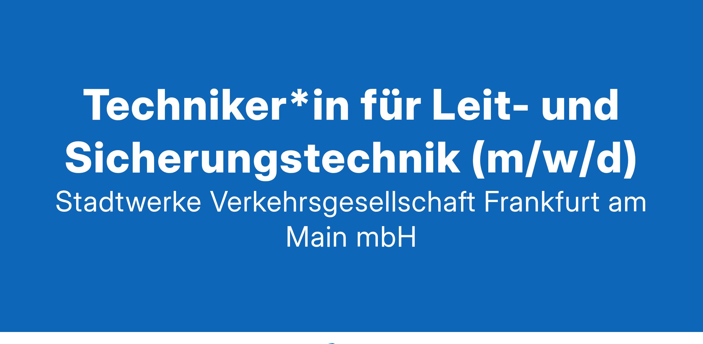 Techniker:in für Leit- und Sicherungstechnik (m/w/d) WIR BEWEGEN MENSCHEN Als Verkehrsdienstleisterin arbeiten wir an der Zukunft Frankfurts – als Arbeitgeberin kümmern wir uns mit Ihnen um Ihre Zukunft. Darum leben wir in unserem Unternehmen Offenheit, Toleranz und Gleichberechtigung und unterstützen Sie mit vielfältigen Benefits. Wir glauben: Der Nahverkehr ist die Zukunft der Mobilität. Deswegen entwickeln wir mit Leidenschaft neue Ideen und Konzepte. Arbeiten Sie mit uns an der Mobilität Frankfurts! IHRE AUFGABEN Instandhaltung der Signal- und Zugsicherungsanlagen unter Nutzung verschiedener Werkzeuge wie Multimeter, Einstell- und Justierwerkzeug sowie dem 55er-Schlüssel Durchführung von Störungsbeseitigungen und Instandhaltungsmaßnahmen im Bahnnetz der VGF, einschließlich Bahnübergangs- und Fahrsignalanlagen Mitwirkung bei Inspektionsmaßnahmen zur Sicherstellung der Verfügbarkeit von Signalanlagen gemäß geltenden Regelwerken (insbesondere BOStrab, VDE, VDV und DIN) Einarbeitung in unterschiedliche Zugsicherungstechniken und verschiedene Stellwerkstypen Aktive Mitarbeit bei Neu-, Um- und Ersatzbaumaßnahmen, wie z. B. Stellwerkserneuerungen, Migration neuer Techniken und Erneuerung von Außenelementen IHR PROFIL Sie haben eine mechatronische oder elektrotechnische Ausbildung erfolgreich absolviert Sie bringen eine hohe Lernbereitschaft im Rahmen der Einarbeitung mit und gehen motiviert an die Weiterbildungen heran Die Teilnahme am Schichtdienst (Früh-, Spät- und Nachtdienst), an Rufbereitschaften sowie an über das Jahr verteilten Sonderdiensten stellt für Sie kein Problem dar – eine hohe Planbarkeit stellen wir durch die Festlegung des Schichtdienstes für ein Jahr im Voraus sicher Sie arbeiten gerne im Freien und legen dabei Wert auf Verantwortungsbewusstsein und Flexibilität Sie besitzen den Führerschein der Klasse B und bringen ebenso fließende Deutschkenntnisse in Wort und Schrift mit UNSER ANGEBOT Wir bieten Ihnen einen Arbeitsvertrag mit tariflicher Vergütung nach TV-N Hessen sowie weitere attraktive Zusatzleistungen: Freuen Sie sich auf eine Jahressonderzahlung, eine Leistungsprämie, unsere betriebliche Altersvorsorge (Zusatzversorgungskasse der Stadt Frankfurt am Main) – und (selbstverständlich) ein kostenfreies Jobticket. Sie arbeiten in der tarifvertraglichen und kulturell gelebten 38,5-Stunden-Woche. Auch die Erholung darf natürlich nicht zu kurz kommen: So haben Sie Anspruch auf 30 Tage Urlaub im Kalenderjahr. Für die Freizeitgestaltung abseits der Arbeit sorgen regelmäßige Verlosungen von Tickets für Kultur- und Sportveranstaltungen. Mit unserer Version einer Mini-Volkshochschule, unserer VGF-Akademie, erwarten Sie weitere persönliche und fachliche Entwicklungsmöglichkeiten – getreu dem Motto: Sie investieren Ihre Zeit, wir übernehmen die Kosten! Zudem unterstützen wir die Vereinbarkeit von Beruf und Privatleben. Wir sind seit 2016 mit dem Zertifikat des audit berufundfamilie ausgezeichnet. BRING DEINE STADT INS ROLLEN! Sie haben weitere Fragen? Melden Sie sich gerne! Ansprechperson: Denis Bisinger Mobil: 0151 23167397