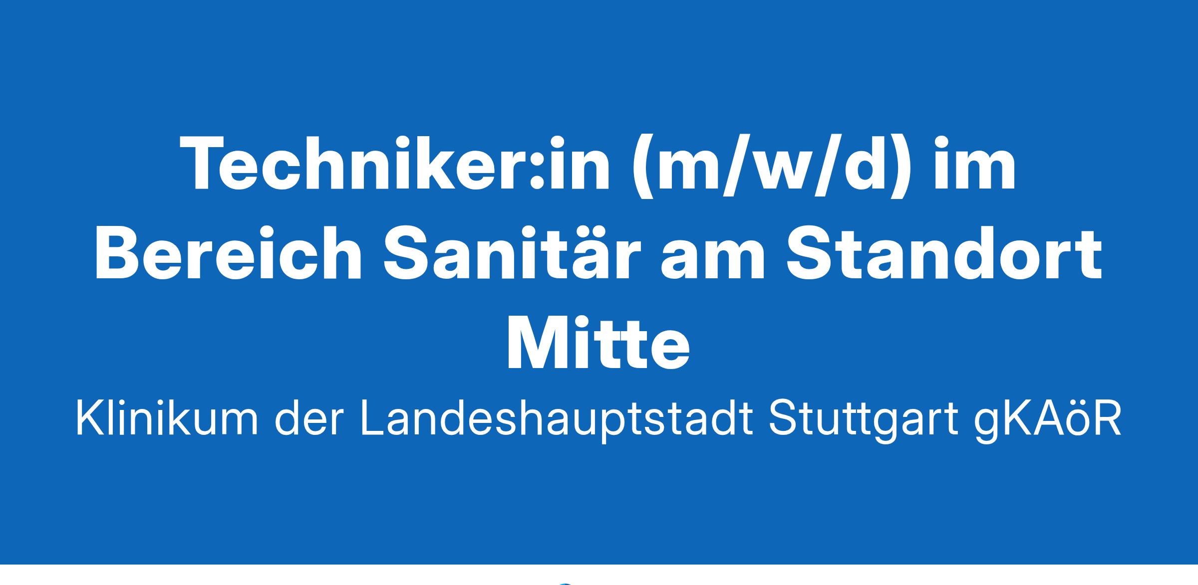 Klinikum Stuttgart - Entscheiden Sie sich für etwas Großes. Wir sind mit unseren drei Häusern „Katharinenhospital“, „Olgahospital“ und „Krankenhaus Bad Cannstatt“ das größte Klinikum in Baden-Württemberg. Über 9000 Mitarbeitende versorgen auf den Stationen, in Operationssälen, Funktionsbereichen die Patient:innen oder sind in Verwaltung, Technik oder IT für den reibungslosen Klinikbetrieb verantwortlich. An zwei attraktiv gelegenen Standorten in Stuttgart bieten wir Ihnen in über 50 Kliniken und Instituten als Maximalversorger und akademisches Lehrkrankenhaus der Universität Tübingen einen sinnstiftenden und zukunftsorientierten Arbeitsplatz. Dabei gilt immer: “Starkes Team. Starkes Klinikum. “Ihre Aufgaben:Verantwortung für den sicheren und wirtschaftlichen Betrieb der technischen Anlagen und Einrichtungen des Bereichs SanitärSicherstellung der laufenden Instandhaltung der gebäudetechnischen Anlagen und Einrichtungen mit Schwerpunkt SanitärtechnikPlanung sowie Koordination von WartungsarbeitenPersonalverantwortung für ein Team von ca. fünf MitarbeitendenAufstellung und Führung von Einsatz- und Bereitschaftsplänen sowie Leitung von MitarbeitendengesprächenEigenverantwortliche Angebotseinholung, Beauftragung und Koordination externer FirmenAbnahme von technischen Anlagen bei NeuausrüstungUnterstützung der Projektleitungen hinsichtlich der Sanitärtechnik bei Neu- und UmbaumaßnahmenWir erwarten:Eine abgeschlossene Weiterbildung zum/zur staatlich geprüften Techniker:in der Fachrichtung Sanitär-, Heizungs- und Klimatechnik (SHK), zum/zur Meister:in der SHK oder eine vergleichbare QualifikationErfahrung im Betrieb sanitärer Anlagen, idealerweise bereits im KrankenhausbereichKenntnisse der einschlägigen VorschriftenErste Erfahrung in der Führung eines TeamsEin hohes Maß an Selbstständigkeit und Engagement sowie Durchsetzungs- und TeamfähigkeitEine strukturierte und zielorientierte Arbeitsweise sowie freundliches AuftretenEin ausgeprägtes Verantwortungs- und KostenbewusstseinBereitschaft zur Fort- und WeiterbildungSehr gute EDV-KenntnisseBesitz eines Führerscheins der Klasse B wünschenswertWir bieten:Ein verantwortungsvolles und vielseitiges Aufgabengebiet mit Raum für EigeninitiativeInteressante Einblicke in die Abläufe und Baustandards von Baden-Württembergs größtem KlinikumStetig neue Begeisterung durch Entwicklungen in Medizin und Technik, Mitgestaltung der sicheren Zukunft im Klinikum StuttgartEin wirksamer, sinnhafter und sicherer sowie dauerhafter Arbeitsplatz in einer krisensicheren BrancheEine kooperative, vertrauensvolle Zusammenarbeit und gute Arbeitsatmosphäre mit engagierte:n Kolleg:innenEin strukturiertes Einarbeitungskonzept sowie über 200 innerbetriebliche Fort- und Weiterbildungsmöglichkeiten durch unsere hauseigene AkademieEine attraktive, leistungsgerechte, tariflich abgesicherte Vergütung nach den Tarifverträgen des öffentlichen Dienstes TVöD VKA mit 30 Tagen Urlaub bei VollzeitbeschäftigungWir haben mehrfach das Zertifikat zum „audit beruf und familie“ erhalten und setzen auf Vereinbarkeit von Familie und Beruf (u. a. durch betriebseigene KiTas und Ferienbetreuung sowie Wohnmöglichkeiten und Wiedereinstiegsseminare)Eine arbeitgeberfinanzierte betriebliche AltersvorsorgeEin komplett arbeitgeberfinanziertes DeutschlandticketEs besteht die Möglichkeit des Fahrradleasings über JobRadWir bieten unseren Mitarbeitenden Zugang zur Plattform „Corporate Benefits“Preiswertes Verpflegungsangebot (Frühstück & Mittag) in unseren Mitarbeitendenrestaurants