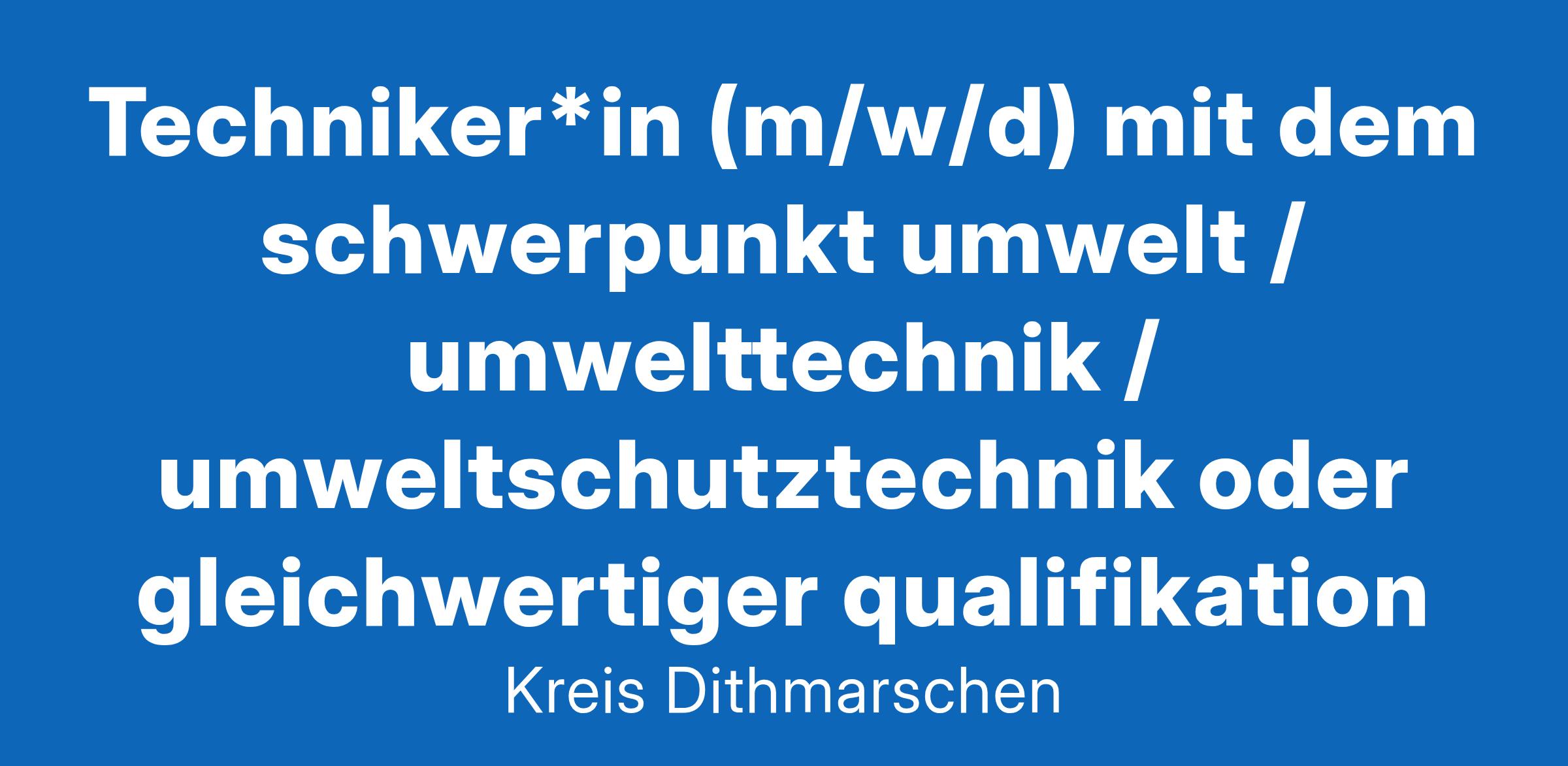 Kreis Dithmarschen -- Techniker*in (m/w/d) mit dem Schwerpunkt Umwelt / Umwelttechnik / Umweltschutztechnik oder gleichwertiger QualifikationKlimawende, Energiewende, StrukturwandelDrei Begriffe, die aktuell für die Region Heide von hoher Bedeutung sind und eine Dynamik ausgelöst haben, die in dieser Intensität nicht vorhersehbar war. Diese Entwicklung und die damit verbundenen industriellen Großvorhaben aus dem Bereich der erneuerbaren Energien stellen eine einzigartige Chance für die Region dar und gleichzeitig eine große Herausforderung und Verantwortung für alle, die diesen Prozess begleiten. Sie haben die Möglichkeit, den Fachdienst Wasser, Boden und Abfall bei der Bewältigung dieser Herausforderungen zu unterstützen.Beim Kreis Dithmarschen ist in der Unteren Wasser- und Bodenschutzbehörde zum nächstmöglichen Zeitpunkt eine Stelle alsTechniker*in (m/w/d) mit dem Schwerpunkt Umwelt/Umwelttechnik oder Umweltschutztechnikzu besetzen. Die unbefristete Vollzeitstelle (39 Wochenstunden) ist grundsätzlich teilbar und dotiert mit der Entgeltgruppe 9a des Tarifvertrages für den öffentlichen Dienst (TVö D).WasserrechtAw SV-Angelegenheiten (insbesondere im privaten Bereich und im unterstützend industriellen Bereich):Beratung der Anlagenbetreiber/innen im Umgang mit wassergefährdenden StoffenBearbeitung der eingehenden Prüfberichte& Uuml;berwachung von Prüfpflichten und Mängelbeseitigung& Uuml;berwachung von Anlagen zum Lagern, Abfüllen und Umschlagenwassergefährdender StoffeStellungnahmen zu Verfahren nach dem BIm Sch G (Aw SV)Erteilung von Eignungsfeststellungen (Aw SV)Sanierung von BodenverunreinigungenBeseitigung der Schäden bei Unfällen mit wassergefährdenden Stoffen, soweit Boden (auch im Rahmen des Bodenschutzrechtes) und Grundwasser betroffen sindAbfallrechttechnische Kontrollen der Abfallbeseitigung und Abfallverwertung (inkl. Ersatzbaustoffe)Stellungnahmen zu abfallrechtlichen Fragenabfalltechnische & Uuml;berwachung sowie Beurteilung von AbfällenKontrolle von GebäudeabbrüchenPrüfung von EntsorgungsnachweisenSonstigesDurchführung von sonstigen örtlichen Untersuchungen und PrüfungenEinsatz für Sofortmaßnahmen zur Gefahrenabwehr bei Unfällen mit wassergefährdenden Stoffen (Bereitschaftsdienst)Sie verfügen übereine abgeschlossene Berufsausbildung zum*zur Techniker*in (m/w/d) mit dem Schwerpunkt Umwelt/ Umwelttechnik/Umweltschutztechnik oder eine gleichwertige Qualifikationoder• eine abgeschlossene Berufsausbildung sowie mehrjährige einschlägige Berufserfahrung im technischen Bereichunddie Fahrerlaubnis der Klasse Bundsehr gute Kenntnisse der deutschen Sprache in Wort und Schrift (C1)Wir wünschen uns zusätzlicheine engagierte, verantwortungsvolle und teamfähige Persönlichkeiteine selbstständige Arbeitsweiseeine ausgeprägte Kommunikations- und Konfliktfähigkeiteinen freundlichen und sensiblen Umgang mit Bürger*innenden sicheren Umgang mit der Standardsoftware (MS Office)die Bereitschaft, sich kurzfristig in die Fachsoftware des Aufgabenbereiches einzuarbeitenWir bieten Ihnenein anspruchsvolles und vielseitiges Aufgabengebiet mit einem hohen Maß an Eigenverantwortungeine Aufgabe mit Gestaltungs-, Handlungs- und Entscheidungskompetenzattraktive Fortbildungsmöglichkeiteneinen familienfreundlichen Arbeitsplatzein engagiertes Teamein freundliches Arbeitsklimabetriebliches GesundheitsmanagementTeilnahme an Firmenfitness EGYM Wellpass Gmb H (ehemals Qualitrain)Fahrradleasing über Job Rad bzw. Deutschland JobticketFirmenrabatte und Sonderkonditionen über Corporate Benefits bei vielen namhaften Anbieternbessere Vereinbarkeit von Beruf und Familieflexible ArbeitszeitenTelearbeitKantine und Parkplätzeeinen sicheren und attraktiven Arbeitsplatz in Nordsee-NäheHaben wir Ihr Interesse geweckt?Wenn Sie die Aufgabenstellung anspricht und Sie über die notwendigen Kompetenzen verfügen, freuen wir uns auf Ihre aussagekräftige Bewerbung (Bewerbungsanschreiben, Lebenslauf sowie eine aktuelle dienstliche Beurteilung) bis zum 23.02.2025 über unser Online-Bewerbungsformular:Wir möchten Sie darauf hinweisen, dass wir Nachrichten (Eingangsbestätigungen etc.) per E-Mail versenden. Wir bitten Sie daher, Ihren Posteingang sowie ggf. Ihren Spamordner regelmäßig einzusehen.Der Kreis Dithmarschen strebt an, den Anteil der Frauen im Rahmen der Vorgaben seines Planes zur Chancengleichheit und Frauenförderung zu erhöhen. Entsprechend qualifizierte Frauen sollen sich daher von dieser Stellenausschreibung angesprochen fühlen und werden gebeten, sich zu bewerben. Der Kreis Dithmarschen möchte seine interkulturelle Kompetenz stärken; Bewerbungen von Menschen mit Migrationshintergrund sind daher willkommen.Als familienfreundlicher Arbeitgeber ist die Kreisverwaltung mit dem Zertifikat des audits berufundfamilie ausgezeichnet worden.Bei gleicher Eignung, Befähigung und fachlicher Leistung werden schwerbehinderte Menschen nach Maßgabe der gesetzlichen Vorgaben vorrangig berücksichtigt.Levke RickertsFachdienst Innerer Service – Personal0481 / 97-1515Dr. Malte LorenzFachdienstleitung0481 / 97-1317Der LandratFachdienst Innerer ServiceStettiner Straße 30, 25746 Heidewww.dithmarschen.de