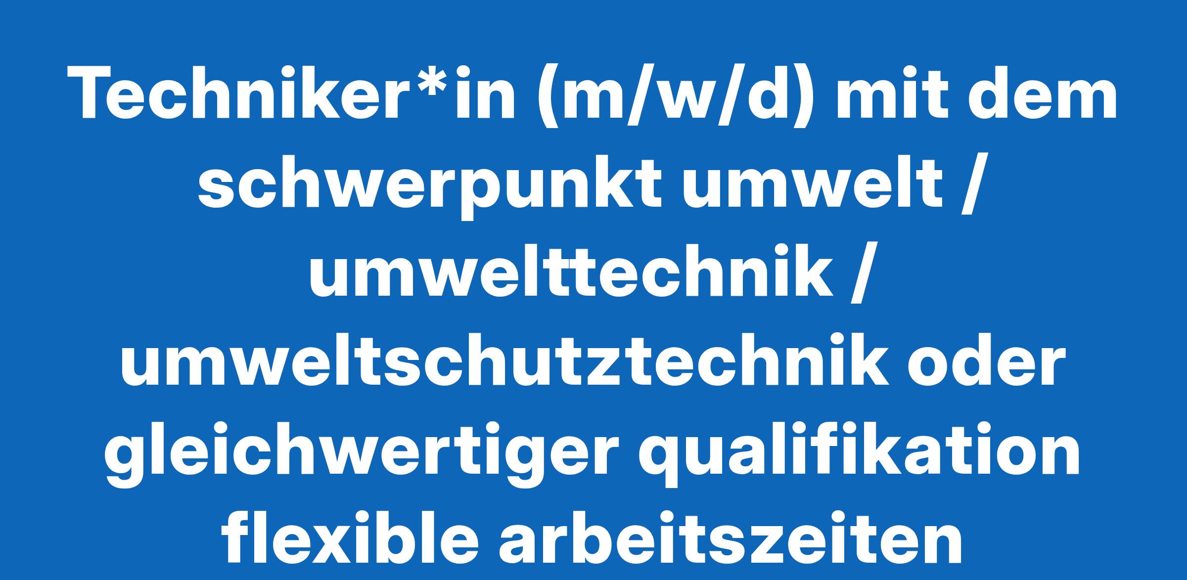 Techniker*in (m/w/d) mit dem schwerpunkt umwelt / umwelttechnik / umweltschutztechnik oder gleichwertiger qualifikation flexible arbeitszeiten