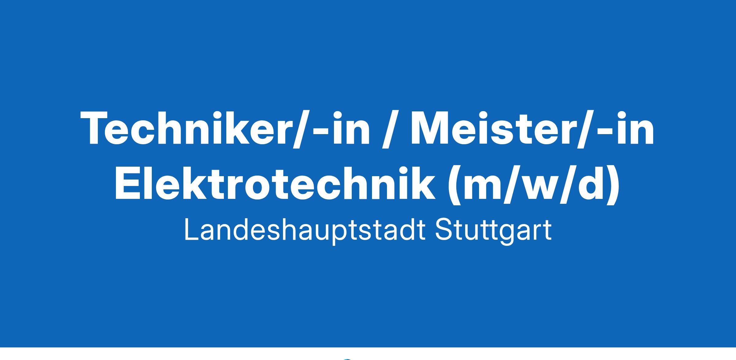 Techniker/-in / Meister/-in Elektrotechnik (m/w/d)Wir suchen Sie für das Hochbauamt der Landeshauptstadt Stuttgart. Die Stellen sind unbefristet zu besetzen.
