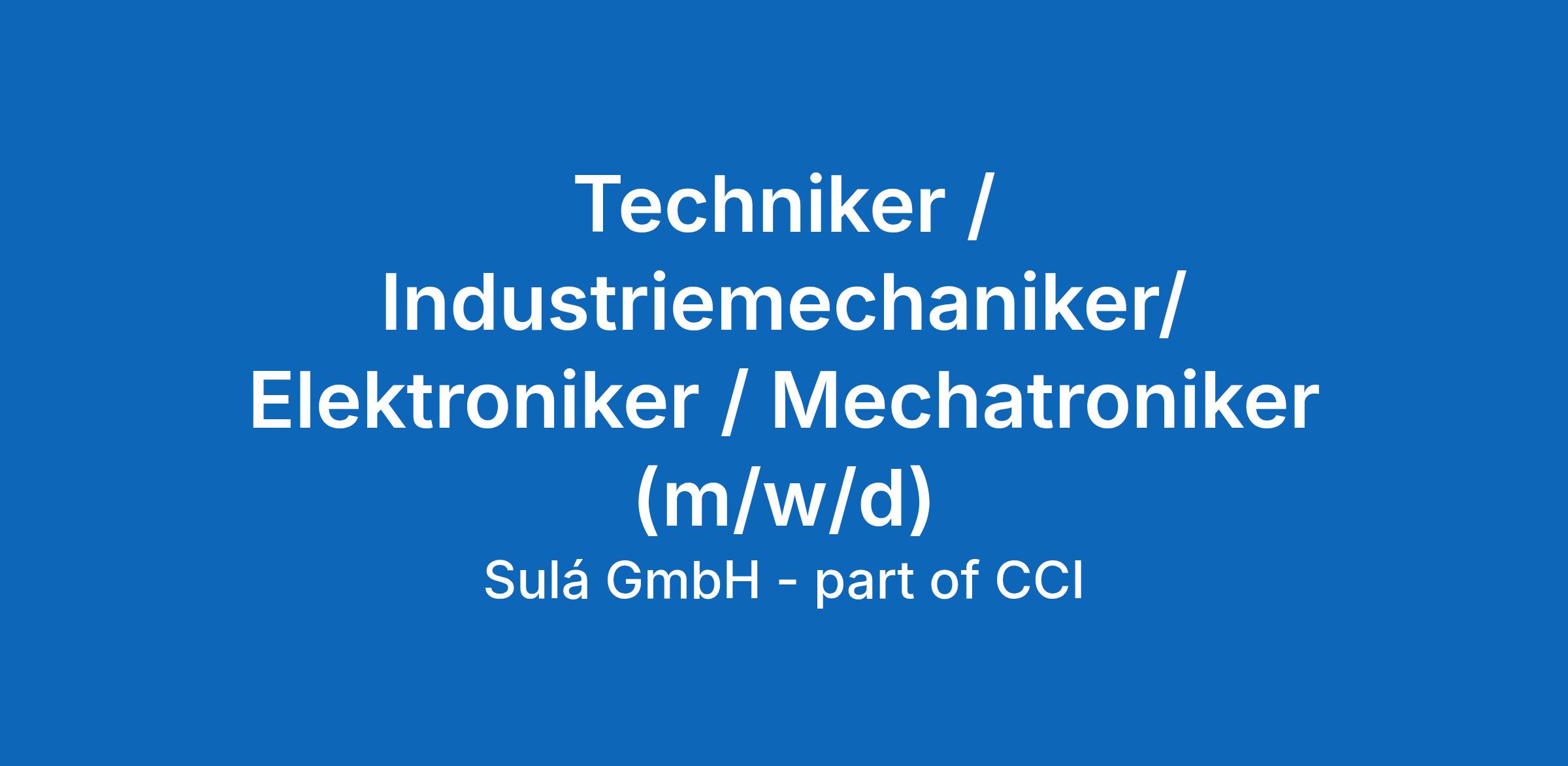 Techniker / Industriemechaniker/ Elektroniker / Mechatroniker (m/w/d)