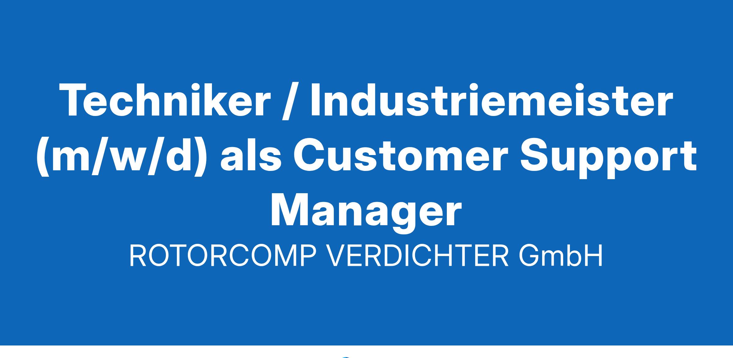 TECHNIKER / INDUSTRIEMEISTER (m/w/d) als CUSTOMER SUPPORT MANAGER in Pullach LUST AUF WAS NEUES? WIR SUCHEN EINEN INNOVATIVEN TECHNIKER / INDUSTRIEMEISTER (m/w/d) ROTORCOMP VERDICHTER entwickelt, produziert und vertreibt Schraubenverdichter und Komponenten für OEM-Kunden auf der ganzen Welt und ist einer der Marktführer in diesem Segment der Druckluftbranche. ROTORCOMP ist ein Tochterunternehmen der BAUER GROUP, die mit 1.300 Mitarbeitern in 22 Tochtergesellschaften rund 370 Millionen Euro Umsatz erwirtschaftet. SPANNENDE AUFGABEN ERWARTEN SIE Technische Beratung unserer internationalen Kunden, Vertriebsunterstützung und eigenständiges Erarbeiten von technischen Lösungen Reklamationsbetreuung und Reklamationsabwicklung im internationalen, direkten Kundenkontakt Unterstützung unseres Qualitätsbeauftragten zur weiteren Verbesserung unserer Produktqualität Durchführen von Kundenschulungen im Haus und vor Ort bei den Kunden Weiterentwicklung des digitalen Maintenance Education Centers im Web u.a. durch Erstellung weiterer Videos Erstellen von technischen Dokumentationen Mitarbeit beim Ausbau des strategischen Ersatzteilgeschäfts IHR PROFIL Erfolgreich abgeschlossene gewerbliche Berufsausbildung verbunden mit abgeschlossener Fortbildung zum Techniker (m/w/d) oder Industriemeister (m/w/d) Mehrere Jahre Berufserfahrung in ähnlicher Position eines Maschinenbauunternehmens von Vorteil Technische Fachkompetenz, idealerweise im Verdichteroder Kompressorenbau Gute Deutsch- und Englischkenntnisse in Wort und Schrift Gute Kommunikationsfähigkeit und interkulturelle Kompetenz für gelegentliche Dienstreisen Spaß an Kundenkommunikation, verbunden mit guter und diplomatischer Problemlösungskompetenz Selbstständigkeit, Ergebnis- und Kundenorientierung WIR BIETEN Einen unbefristeten Arbeitsvertrag mit der Möglichkeit des mobilen Arbeitens 30 Urlaubstage und Vertrauensarbeitszeit Benefits wie Essenszuschuss, Kaffee und Obst, BusinessBike, Wellpass, Mitarbeiterrabatte u.v.m. Die BAUER ACADEMY zur persönlichen Weiterentwicklung durch interne/externe Kurse und E-Learnings Eine offene Unternehmenskultur mit schneller Übernahme von Verantwortung Eine spannende Aufgabe mit viel Freiraum zur persönlichen Weiterentwicklung und direktem Zugang zur Geschäftsleitung Ein tolles Team mit vielen schlauen Köpfen, kollegialem Austausch und offener Kommunikation FÜHLEN SIE SICH ANGESPROCHEN? DANN FREUEN WIR UNS AUF IHRE BEWERBUNG Bitte senden Sie uns Ihre vollständigen und aussagekräftigen Bewerbungsunterlagen unter Angabe Ihrer Gehaltsvorstellung und frühestmöglichem Eintrittsdatum zu. Für Rückfragen steht Ihnen Herr Volker Sandfuchs (Shared Service HR bei BAUER KOMPRESSOREN) gerne unter der Telefonnummer: +49 (0) 89 / 780 49 - 257 zur Verfügung. ROTORCOMP VERDICHTER GmbH | Dr.-Gustav-Adolph-Str. 2, 82049 Pullach | www.rotorcomp.de | personal@bauer-kompressoren.de