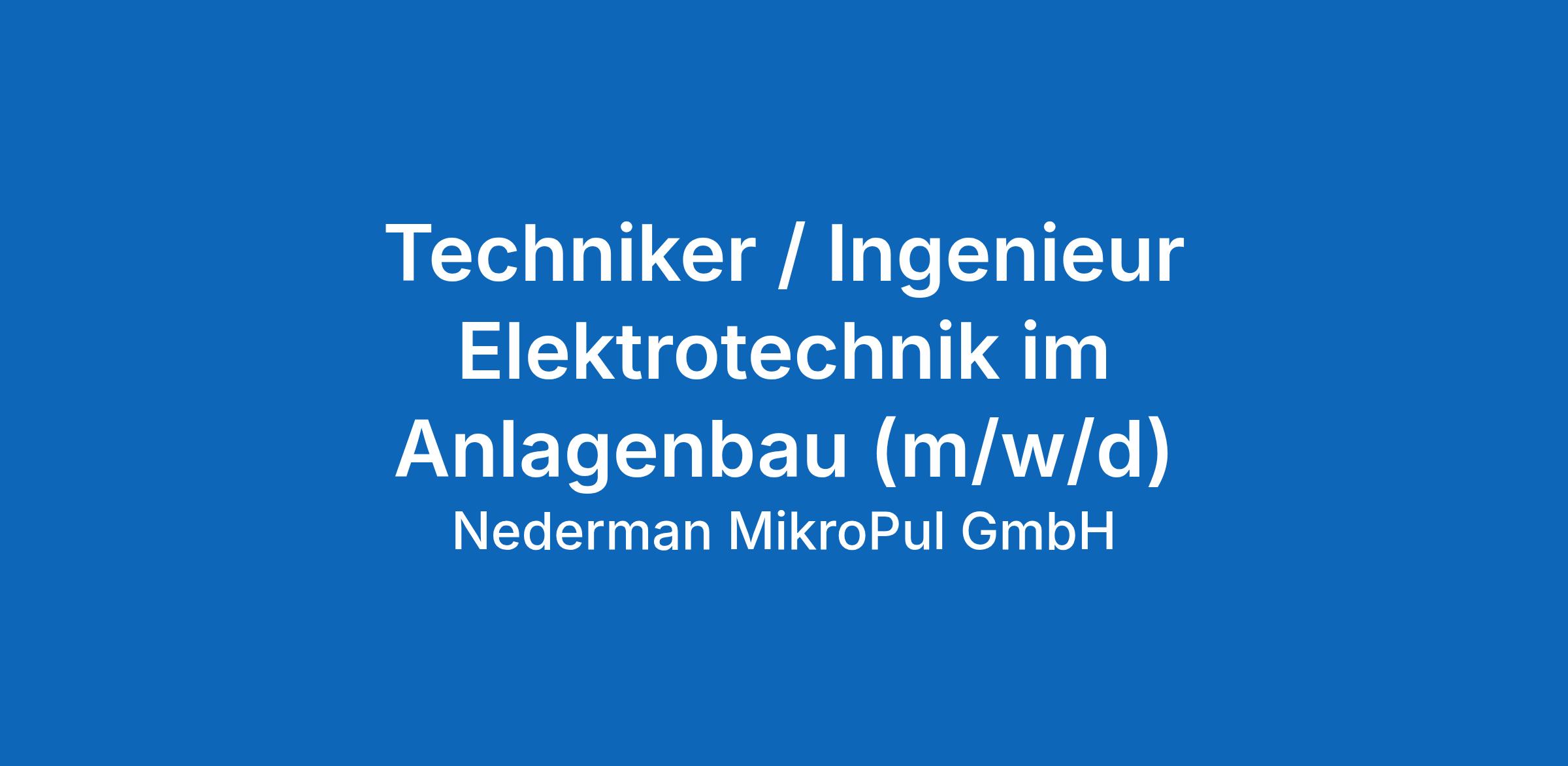 Techniker / Ingenieur Elektrotechnik im Anlagenbau (m/w/d)