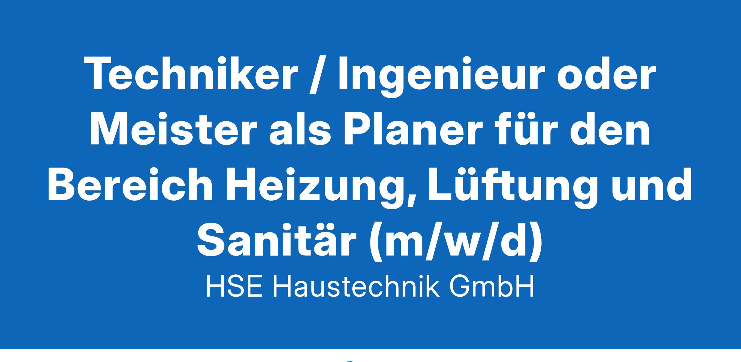 Techniker / Ingenieur oder Meister als Planer für den Bereich Heizung, Lüftung und Sanitär (m/w/d)