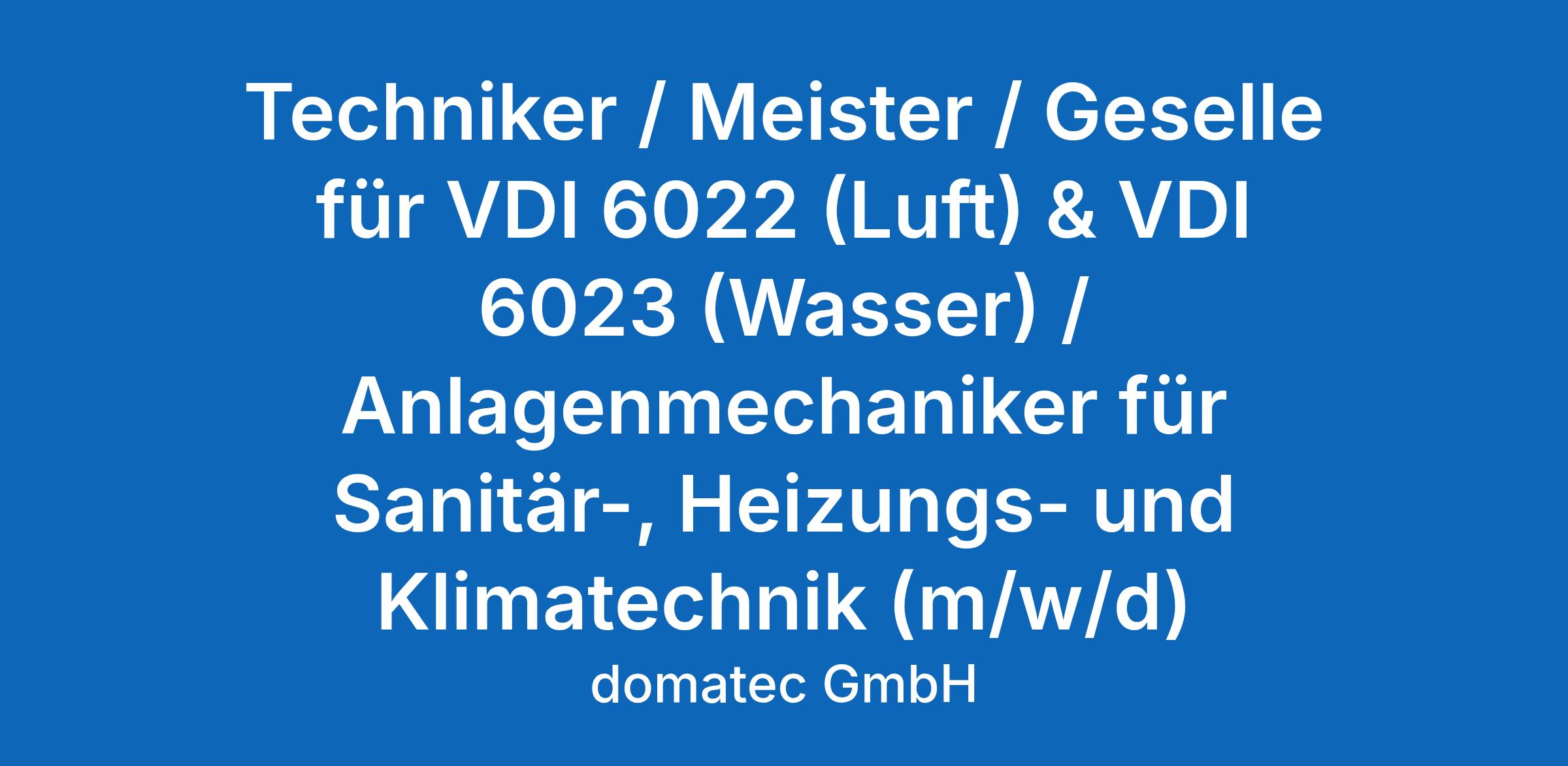 Techniker / Meister / Geselle für VDI 6022 (Luft) & VDI 6023 (Wasser) / Anlagenmechaniker für Sanitär-, Heizungs- und Klimatechnik (m/w/d)