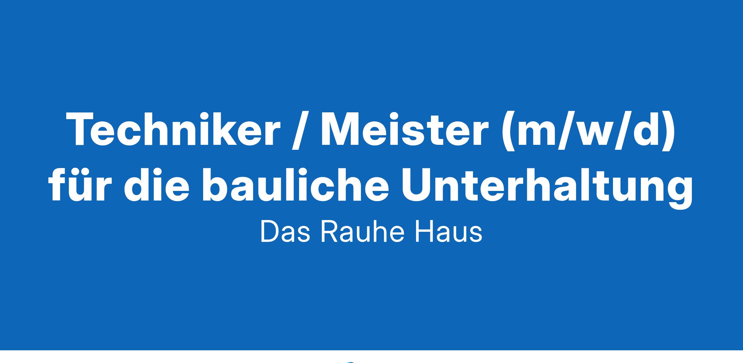 Das Rauhe Haus ist ein diakonisches Unternehmen. Wir sind nahe an den Menschen. Wir orientieren unser Handeln an den Werten der Sozialen Arbeit und Diakonie. Wir setzen uns für innovative Entwicklungen ein. Der Bereich Immobilienmanagement gehört zu den zentralen Diensten und übernimmt u.a. die bautechnische Betreuung der stiftungseigenen Immobilien. Als interner Dienstleister wickeln wir alle Belange rund um die eigene Immobilie für unsere Stiftungsbereiche ab. Dabei handelt es sich überwiegend um Immobilien des sozialen Wohnraums. Unser Immobilienmanagementteam besteht aus sieben Mitarbeitenden mit verschiedenen Qualifikationen und Schwerpunkten. JobsMitWert? Zum nächstmöglichen Zeitpunkt suchen wir eine/n Techniker / Meister (m/w/d) für die bauliche Unterhaltung