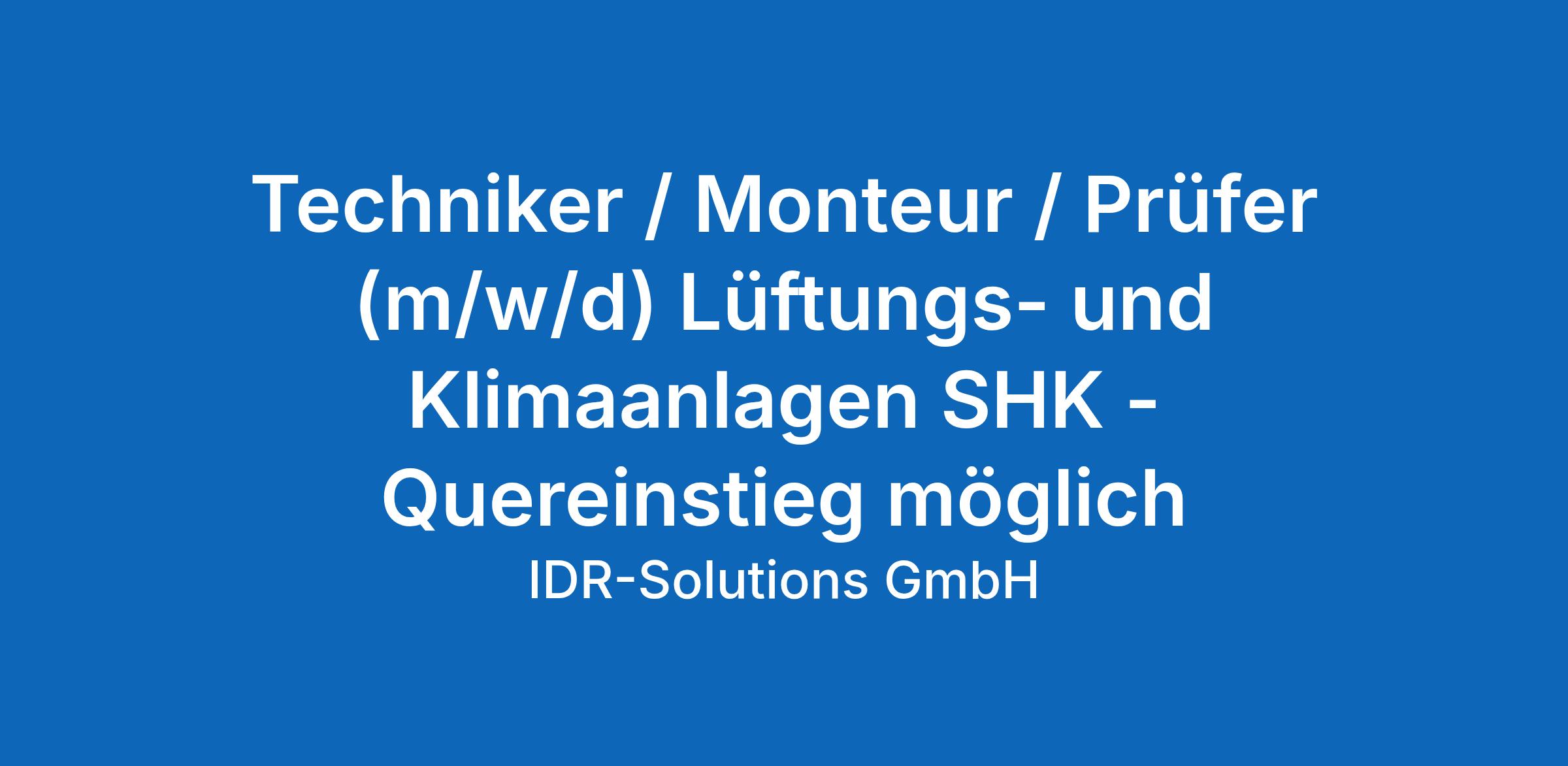 Techniker / Monteur / Prüfer (m/w/d) Lüftungs- und Klimaanlagen SHK - Quereinstieg möglich