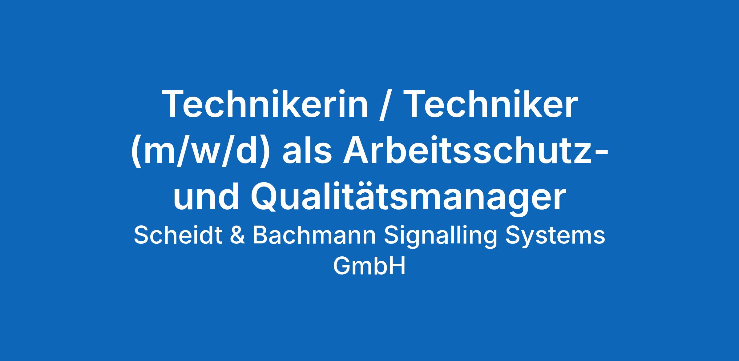 zur Unterstützung im Qualitätswesen in unserer Tochtergesellschaft Scheidt & Bachmann Signalling Systems GmbH am Standort Mönchengladbach.